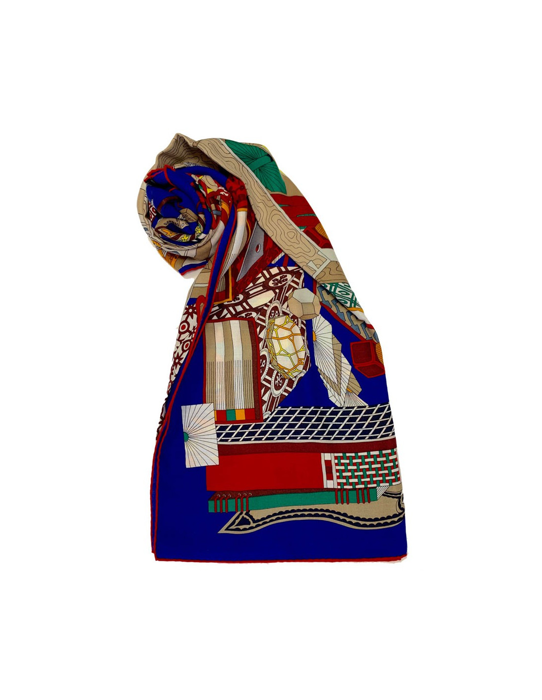 Caractéristiques de ce châle HERMES bleu Les Trésors d'un Artiste