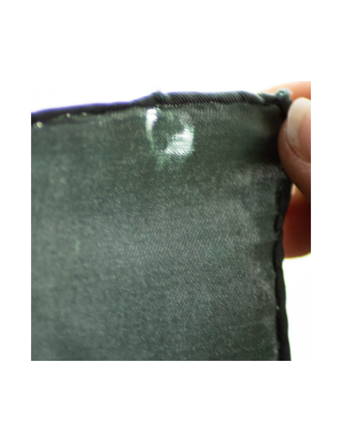 Le foulard est un carré dont les côté mesurent 88 centimètres. Nous observons également que l'étiquette matière est manquante.
