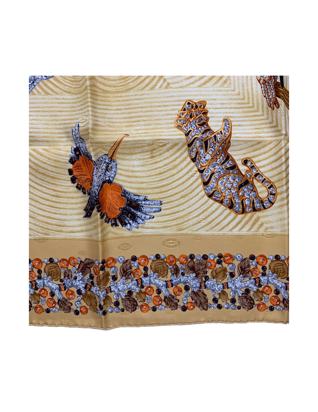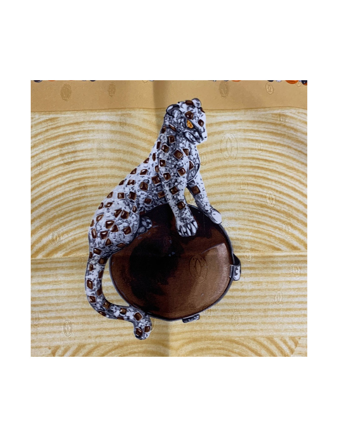 Foulard CARTIER Horloge animaux bijoux en soie de couleur or
