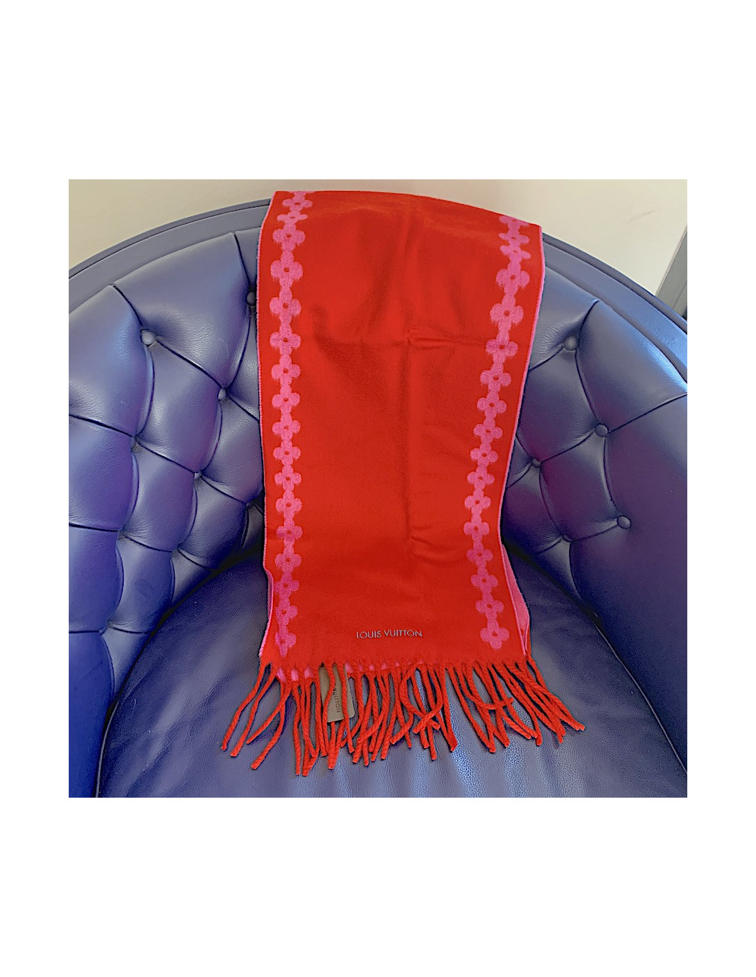 LOUIS VUITTON Echarpe "Flowers River" en cachemire rouge et rose