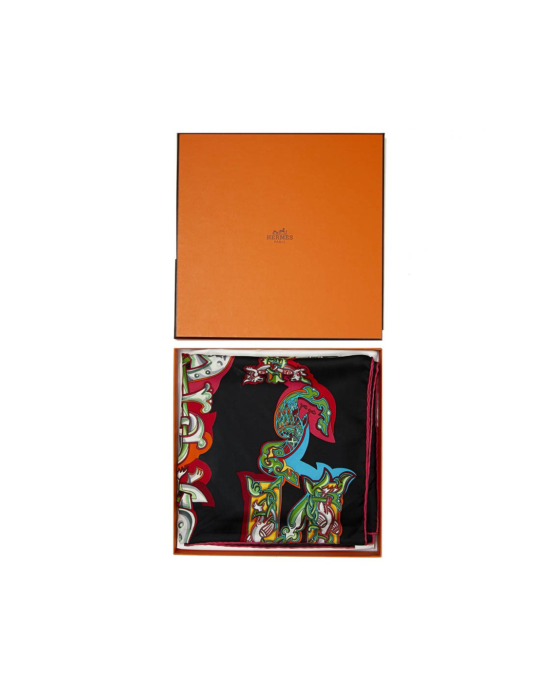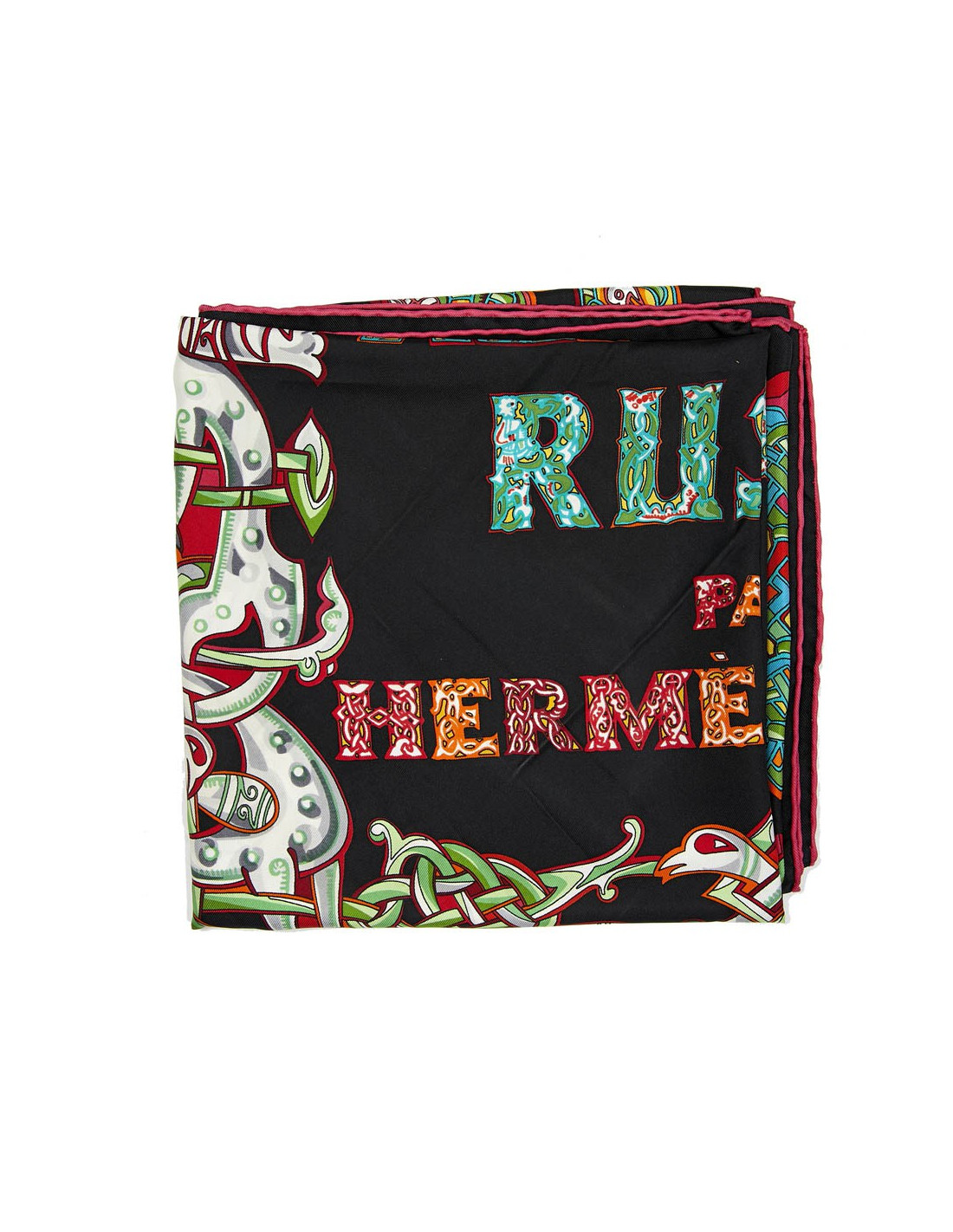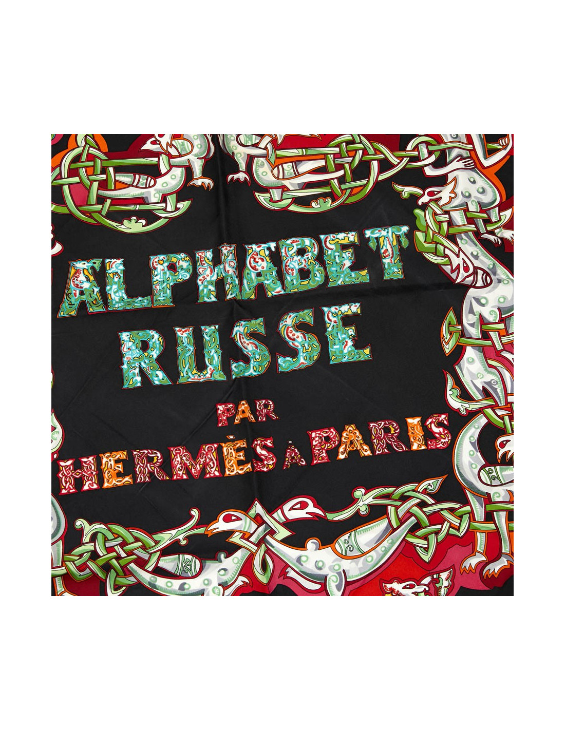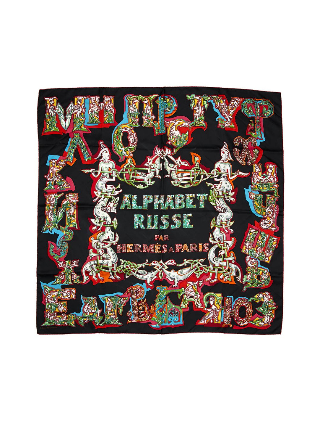 Collector. Carré L'Alphabet Russe HERMES en soie noire