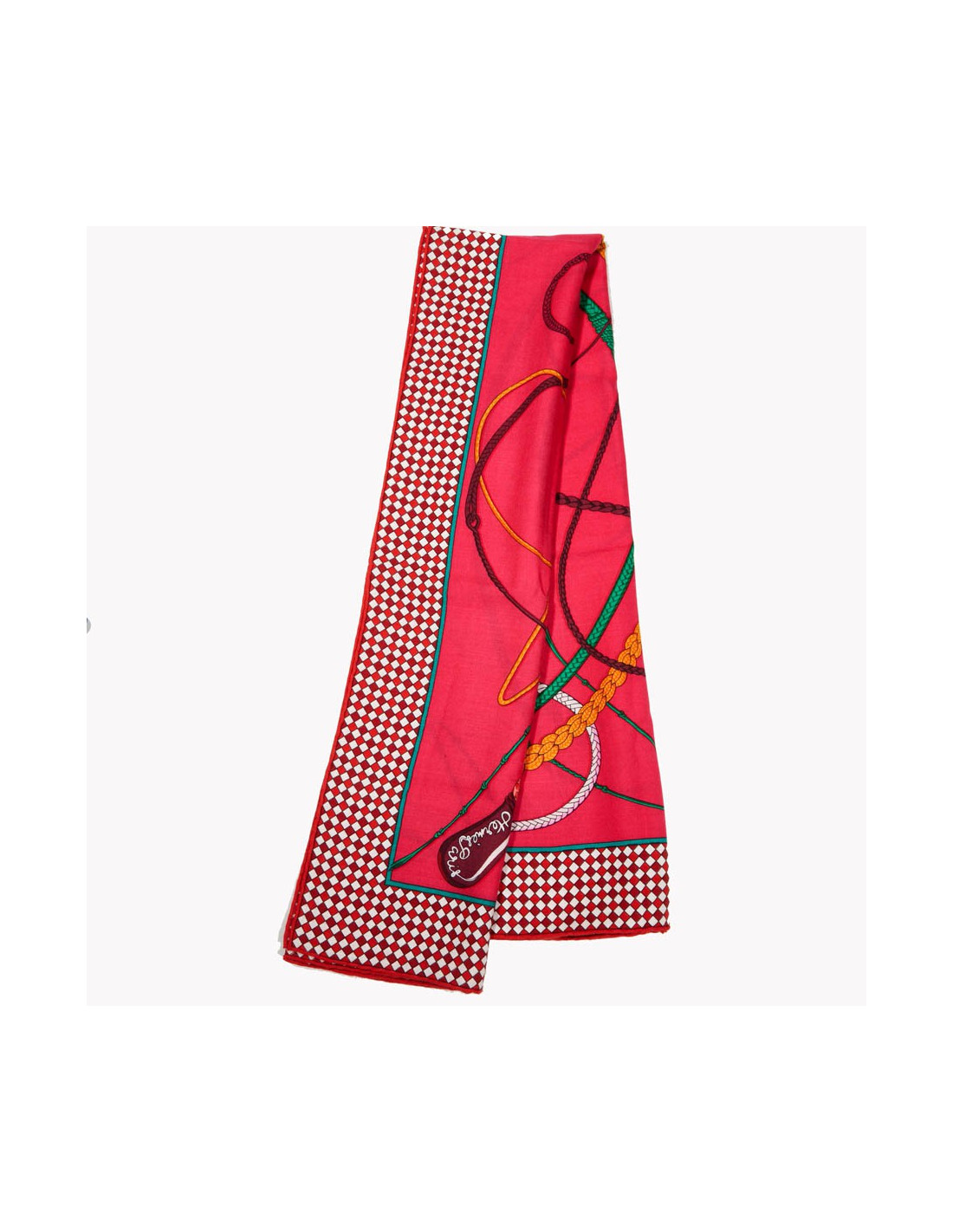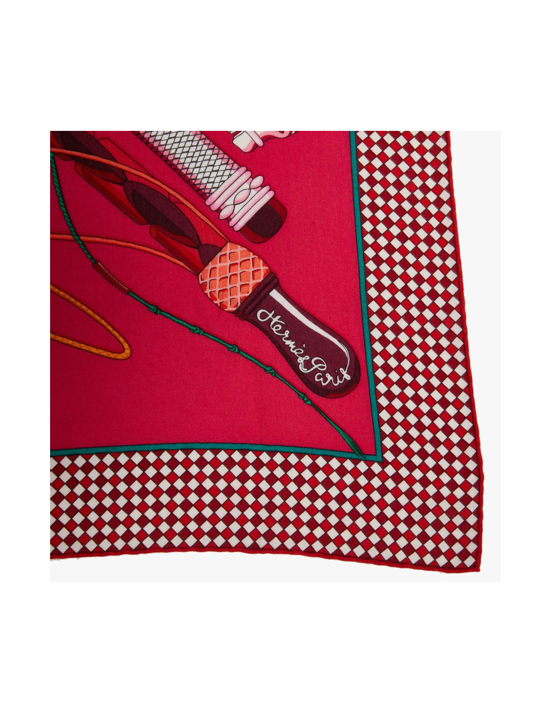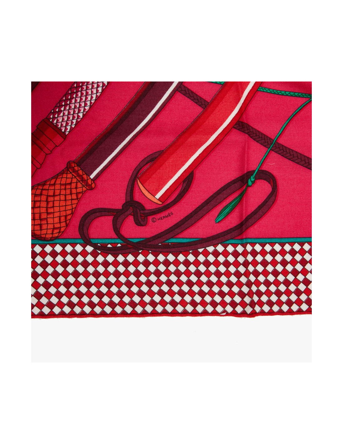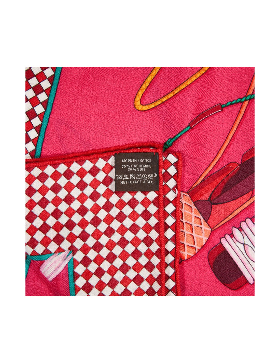 Ce grand châle Hermès est intitulé "fouets et badines", du XIX siècle. Le rose indien est la couleur prédominante. Il n'a jamais été porté.