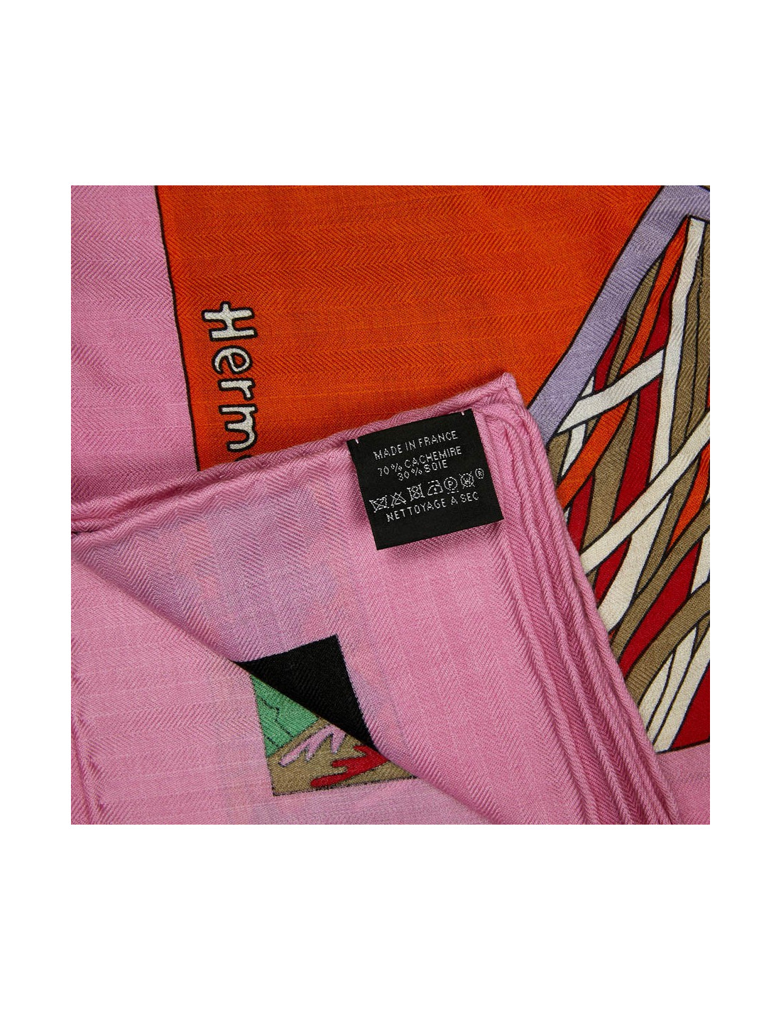 Châle HERMES A travers champs en cachemire rose