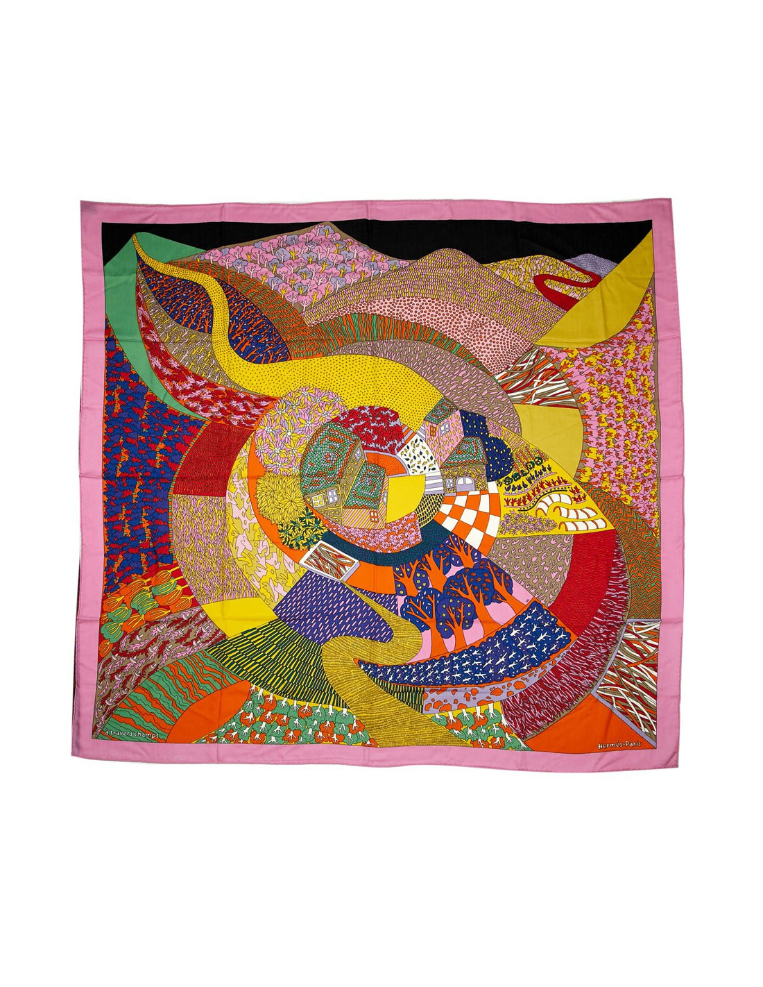 Ce grand châle Hermes " A travers champs" fut dessiné par M. Bonnin en 2018, il est en cachemire et soie.