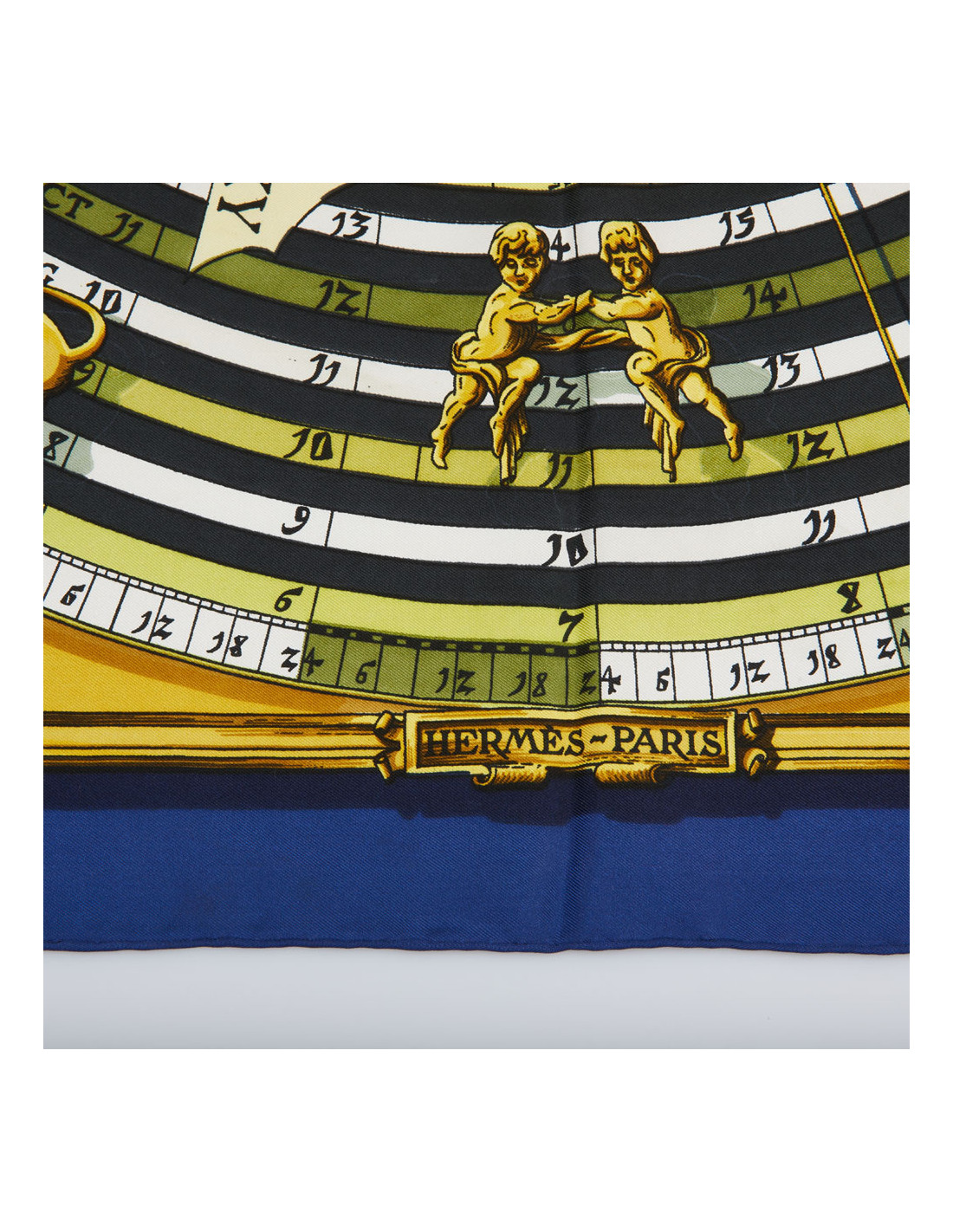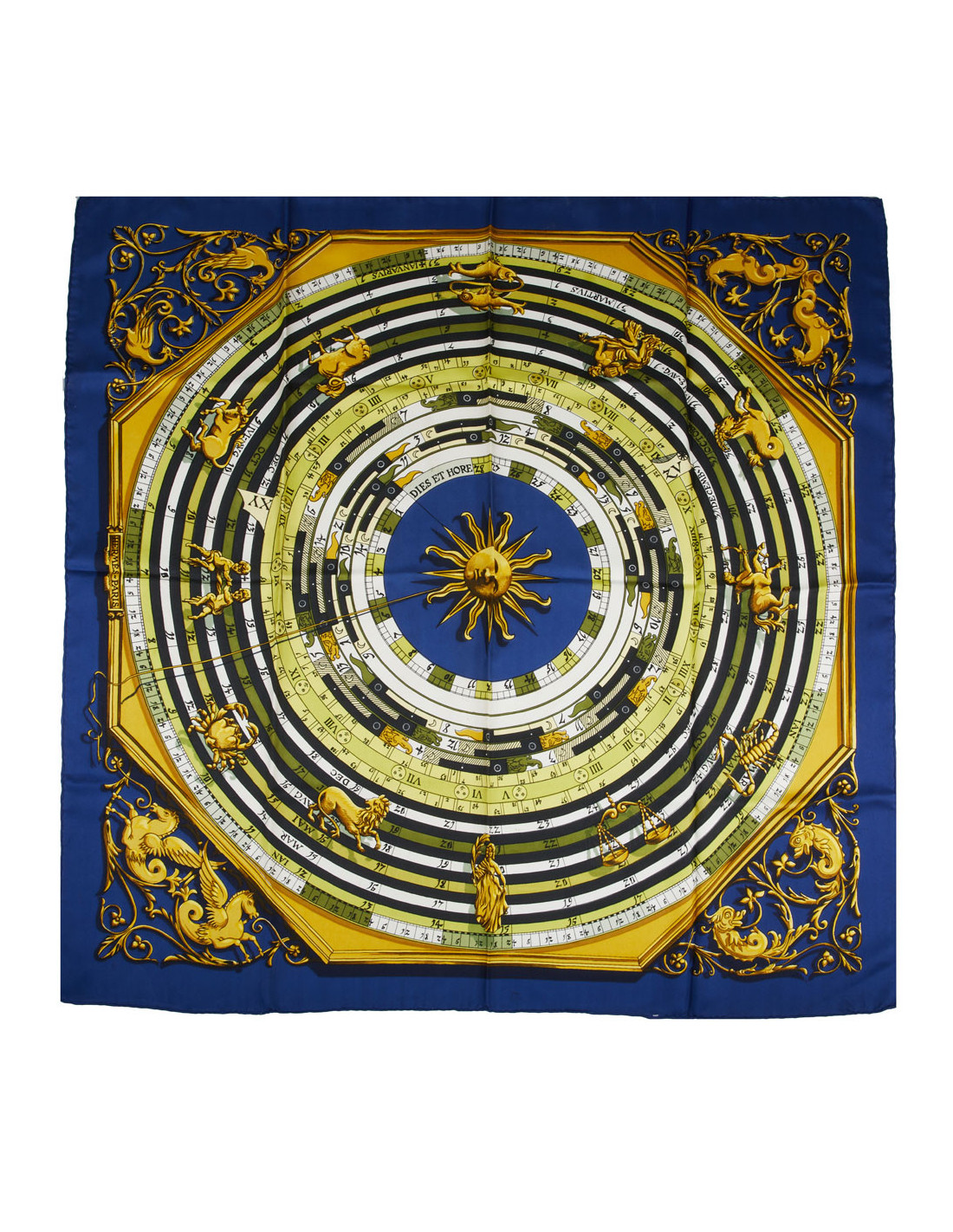 Détails : Etiquette de composition présente, signé Hermès Paris. Ce carré est inspiré d'une planche de la renaissance indiquant les passages du soleil et de la lune dans le ciel.