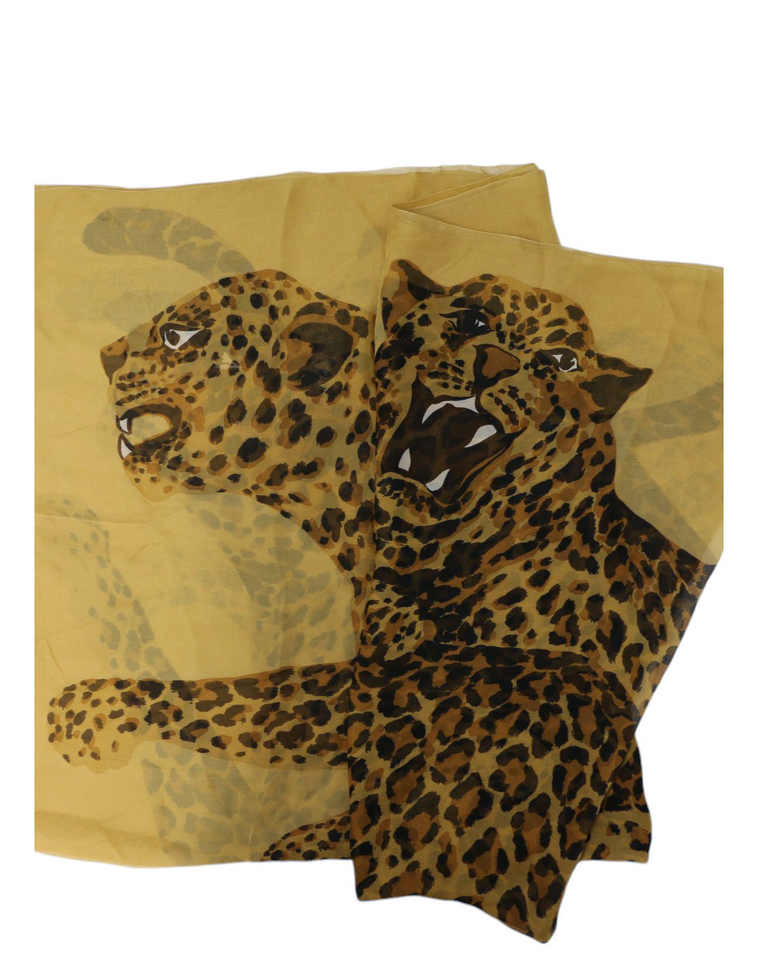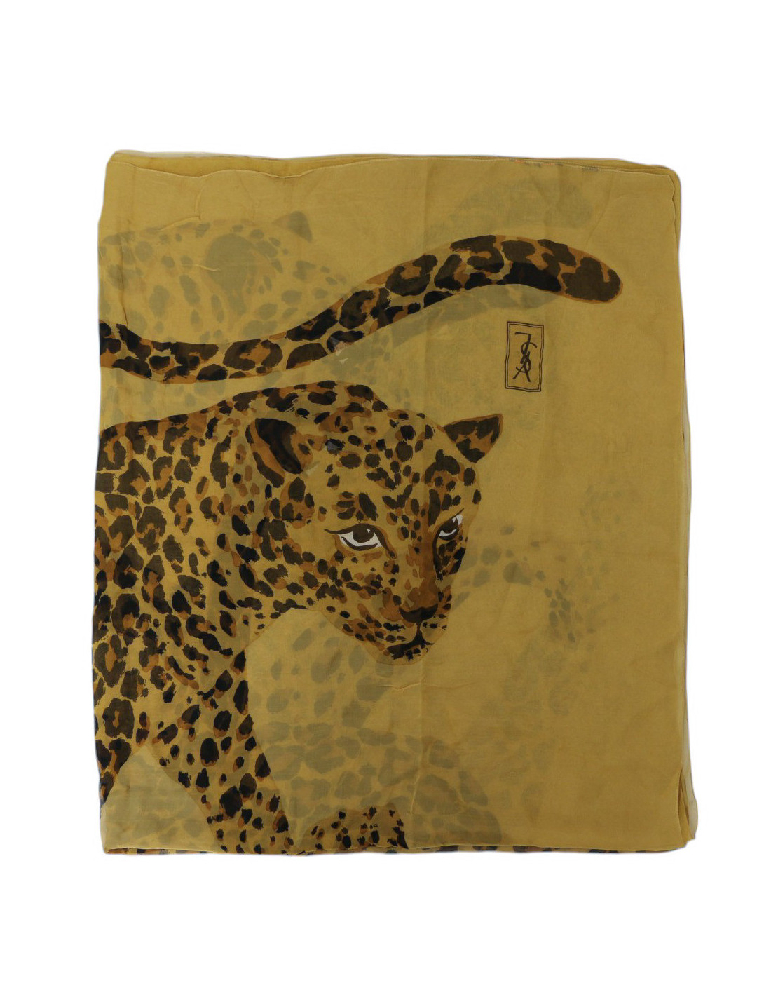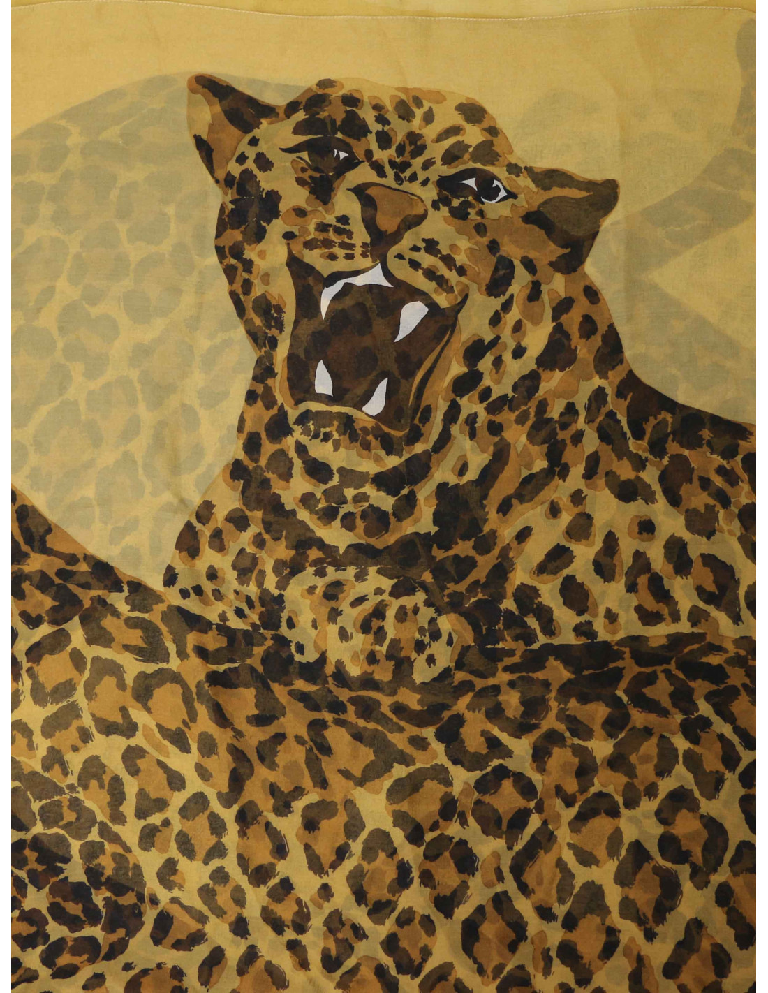 Détails : super foulard vintage imprimé léopard, animal glamour symbolique de la Maison, profondément lié au style de Yves Saint Laurent.