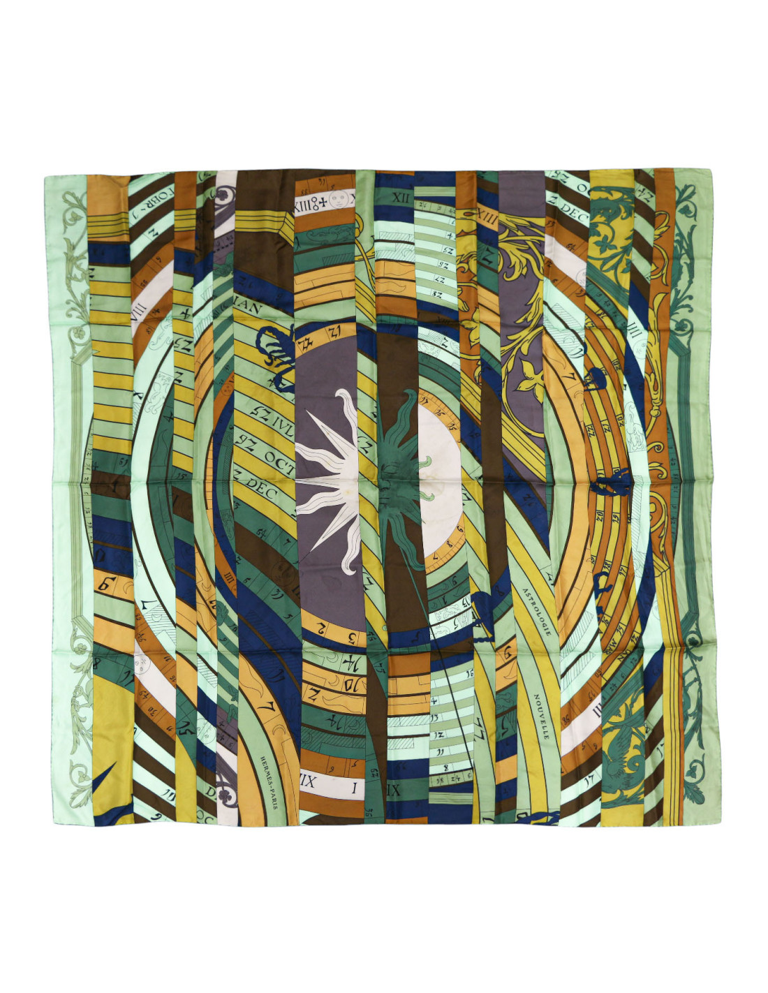 Rare Grand carré HERMES Astrologie Nouvelle twill soie