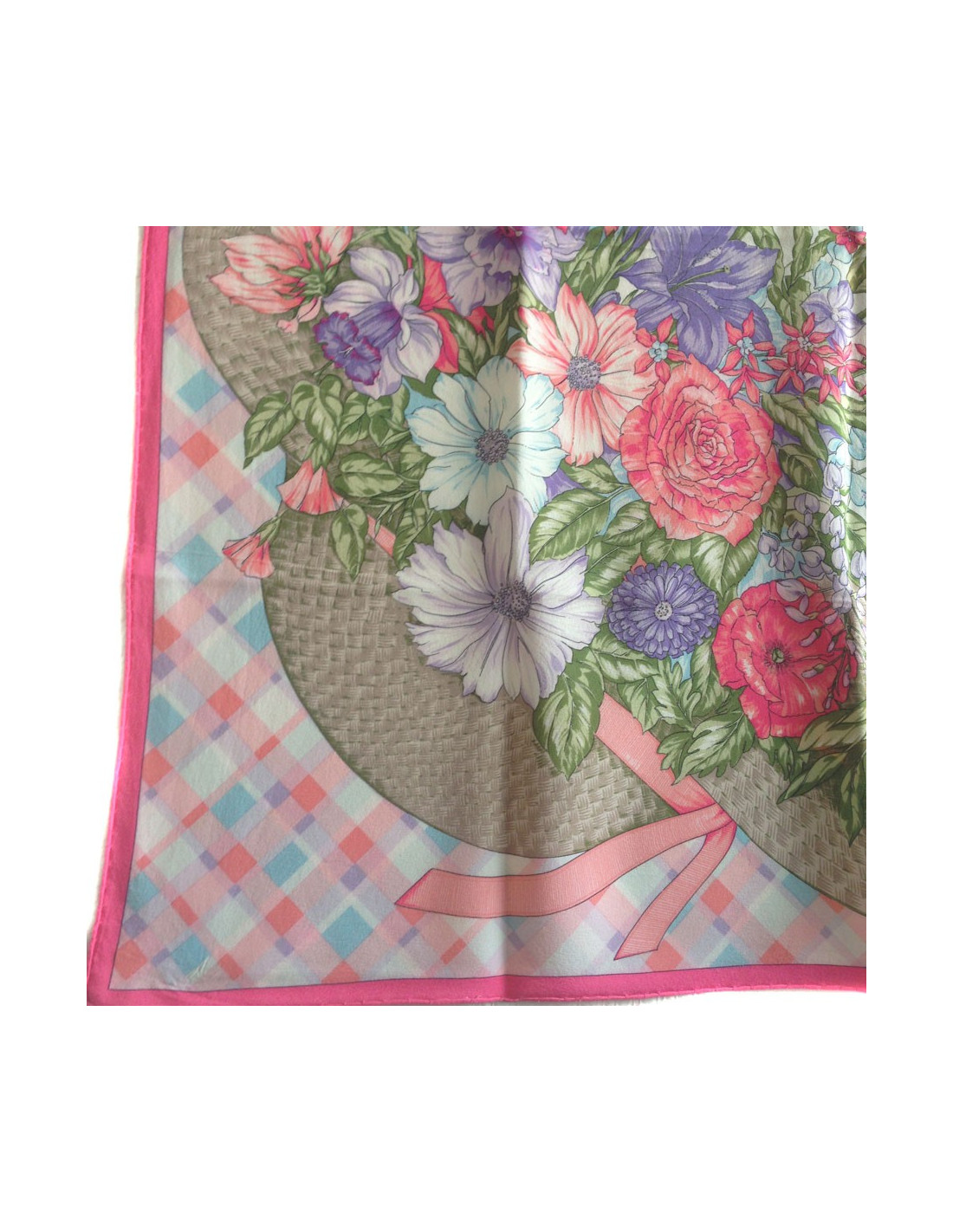 Carré vintage. Motif: chapeau de paille garni de fleurs.