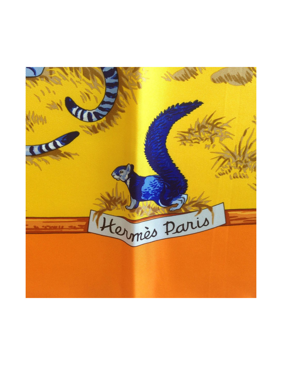 Vendu FOULARD/ECHARPE Carré HERMES masques africains HERMES 35188 390,00 € Carré HERMES "Carrés africains" en soie Condition : très bon étatPays de fabrication : FranceMatière : 100% soieCouleur : noir, bleu, bordeaux, doréDimensions : 90 x 90 cmDesigner : Loïc DubigeonAnnée : Edité en 1997, réédité en 2003 en sépia Extrait d'un article "figurines et masques africains d'époques, propriété des chefs des tribus, étaient transmis... Voir