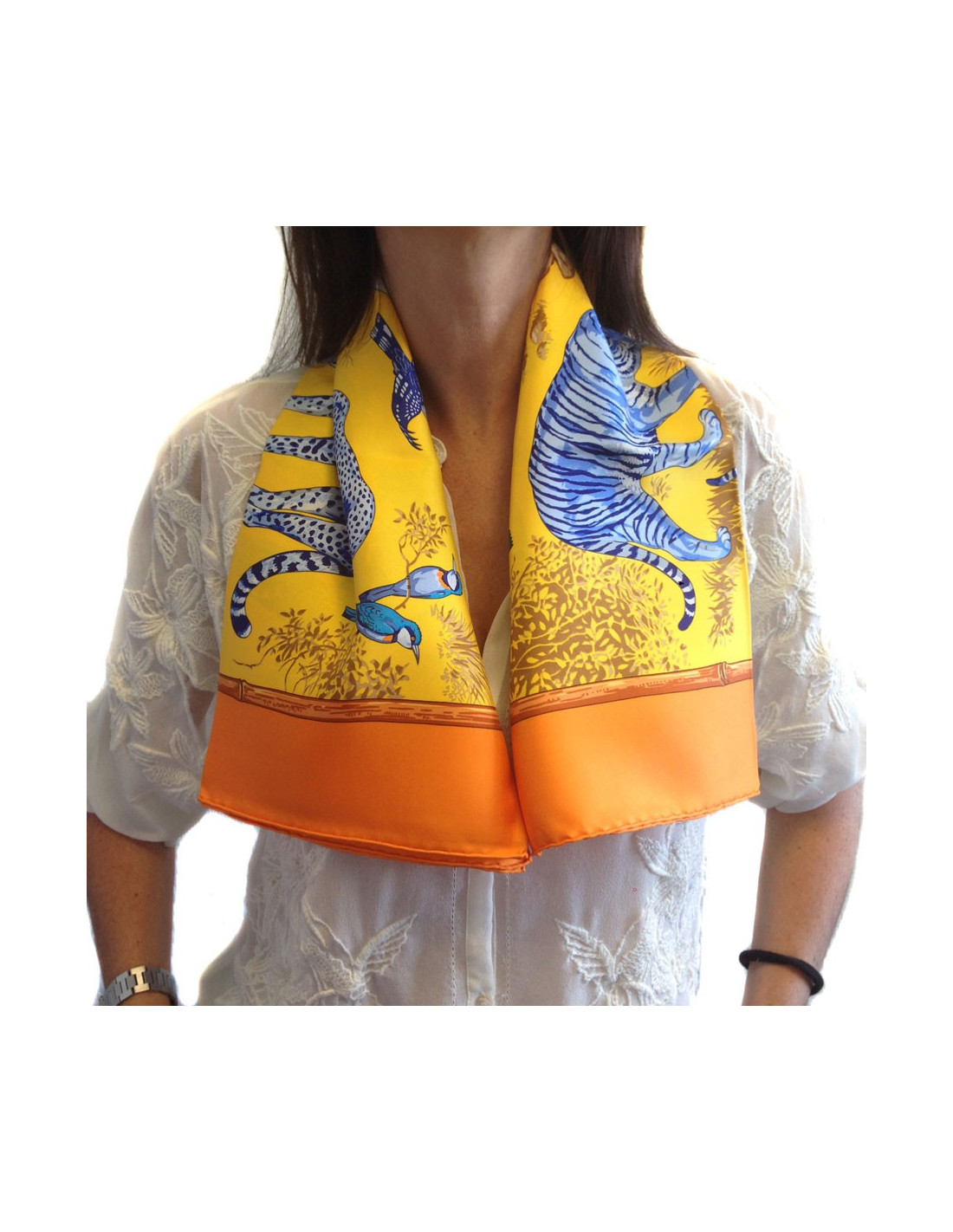 Nouveau Derniers articles en stock FOULARD/ECHARPE Plissé HERMES Jungle Love HERMES 39218 520,00 € Foulard plissé HERMES Jungle Love orange Condition : très bon étatPays de fabrication : FranceCollection : Plissé 90Modèle : Jungle LoveMatière : soieCouleur : orangeDimensions : 90 x 90 cmArtiste : Robert DalletAnnée : crée en 2000, ce modèle a été réédité nombreuses foisDétails : Robert Dallet est un collaborateur du Muséum national d'Histoire... Ajouter au panier