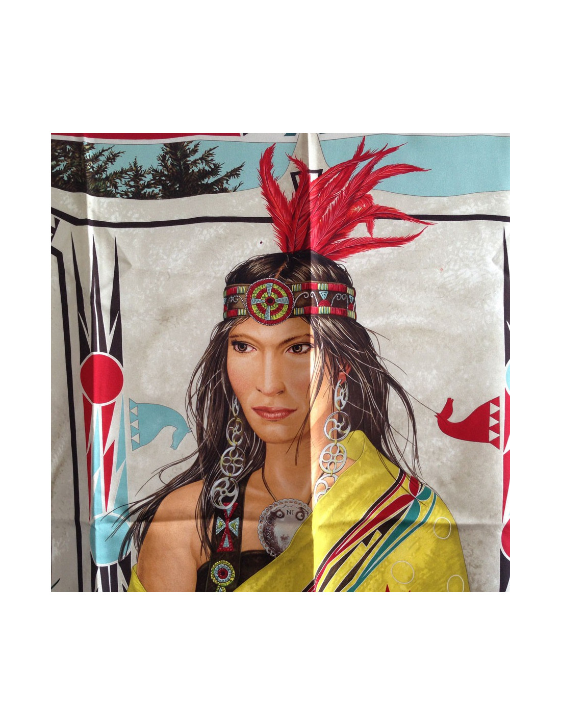 Carré HERMES "WA'KO NI" princesse indienne en soie jaune