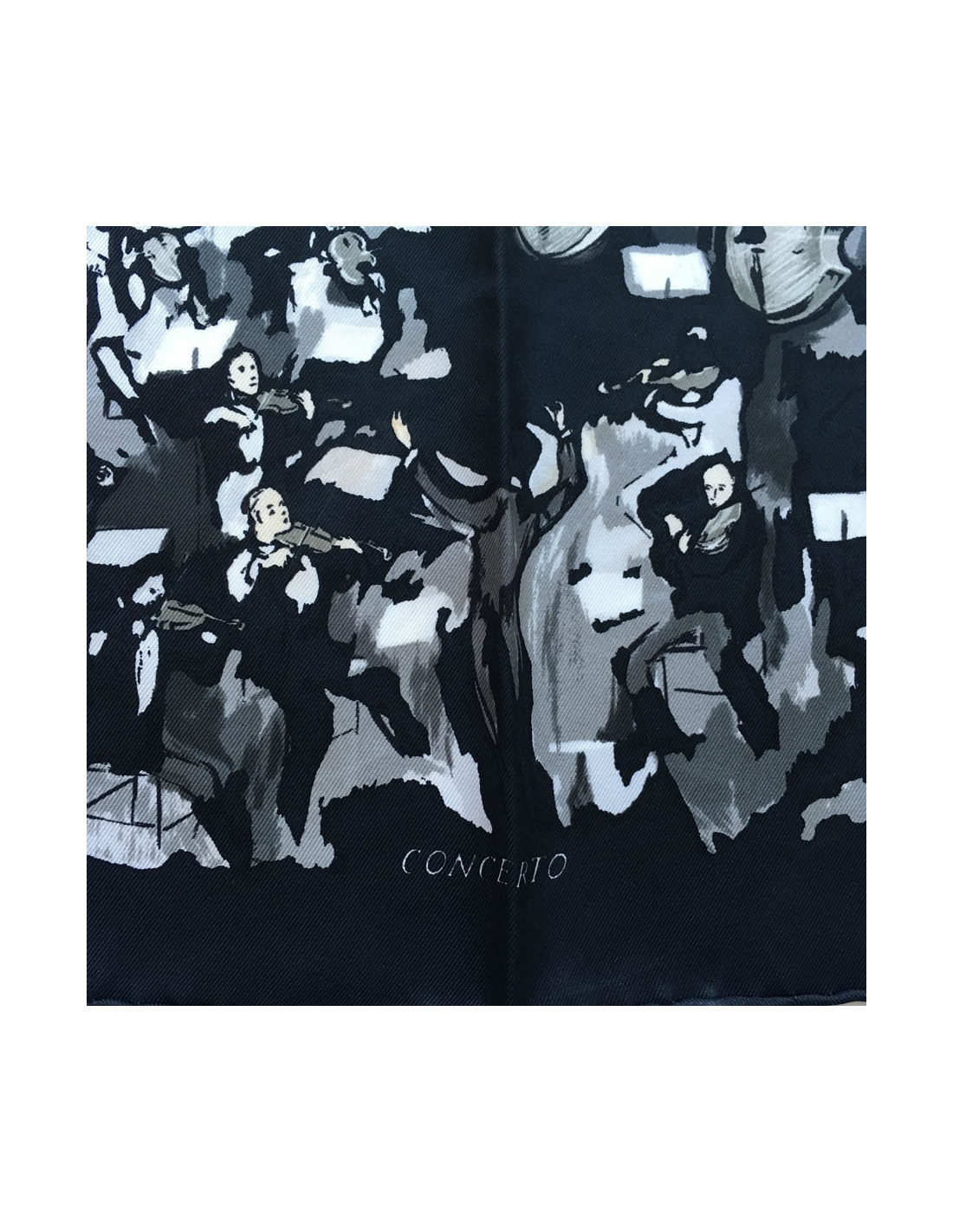 Gavroche HERMES "Concerto" en soie noir, gris et blanc