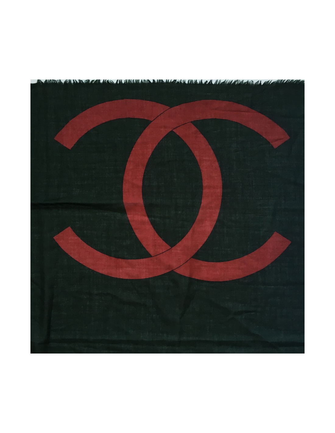 Étole CHANEL en soie et cachemire vert et rouge brique