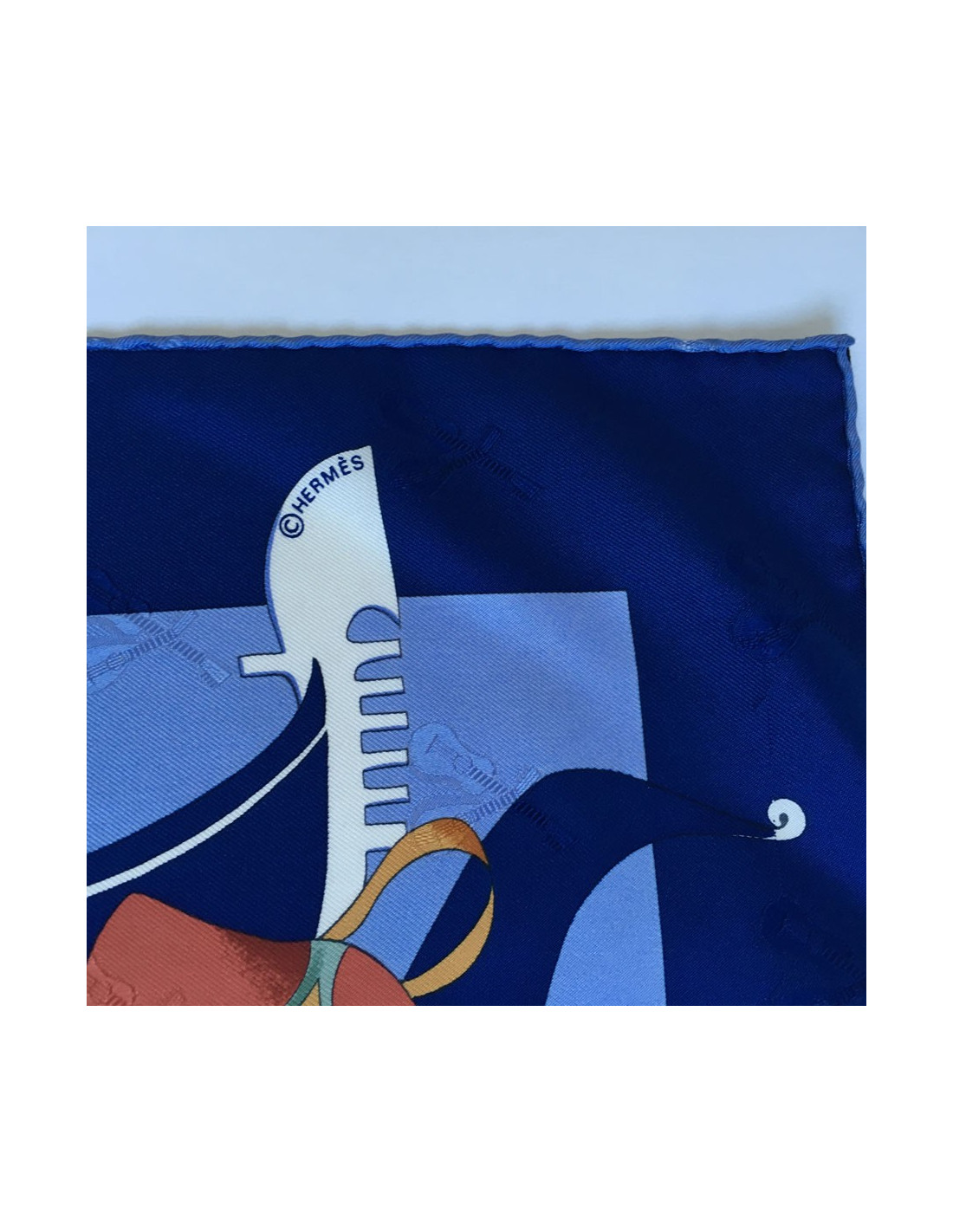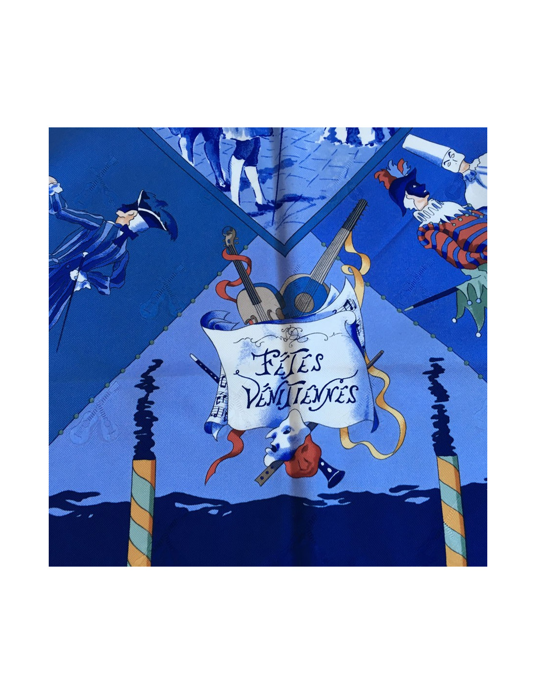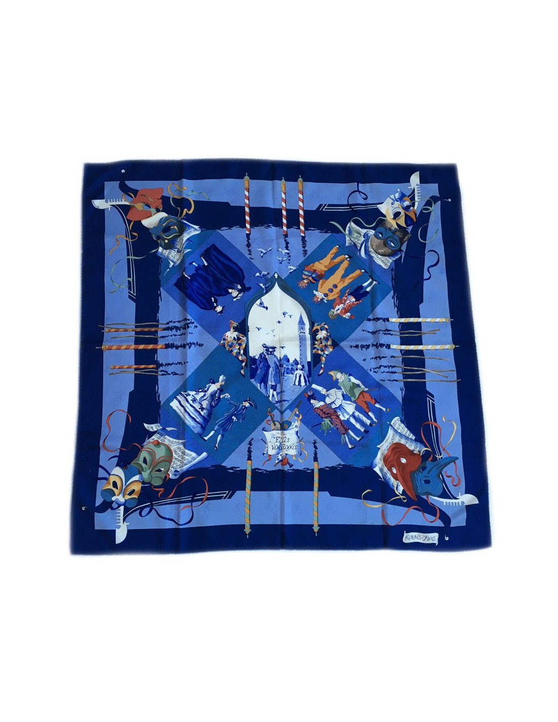 Carré HERMES "Fêtes Vénitiennes" en soie bleue nuit
