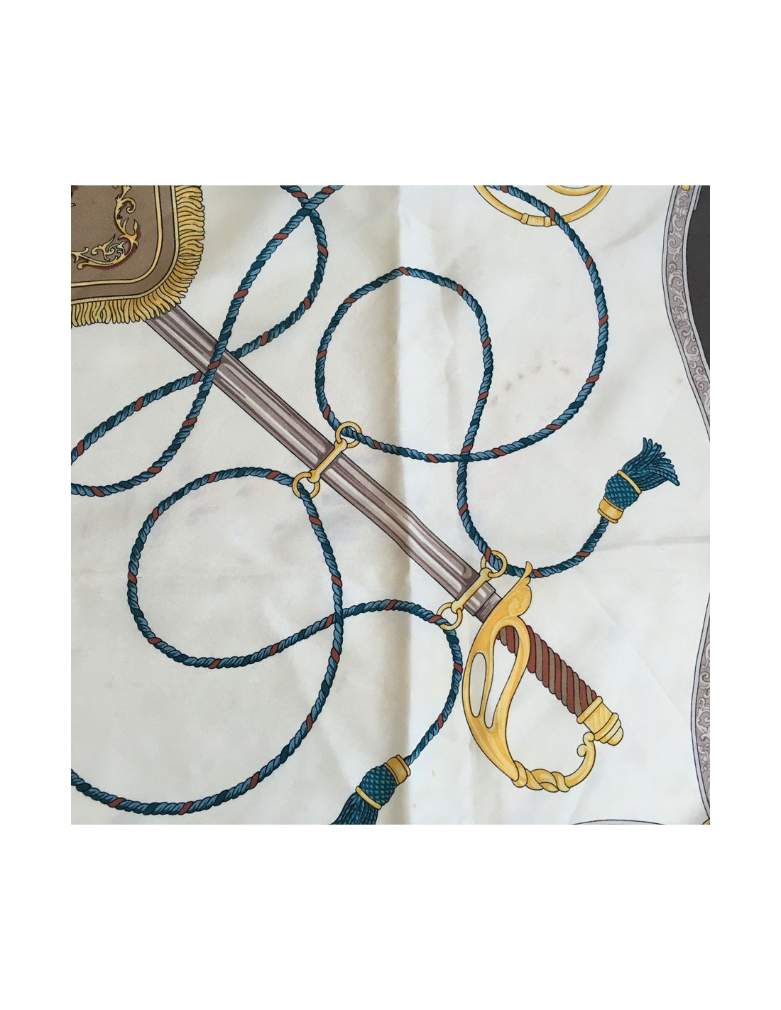 Quelques tâches sur le foulard (voir photos). Le roulotté est impeccable. En bon état général.