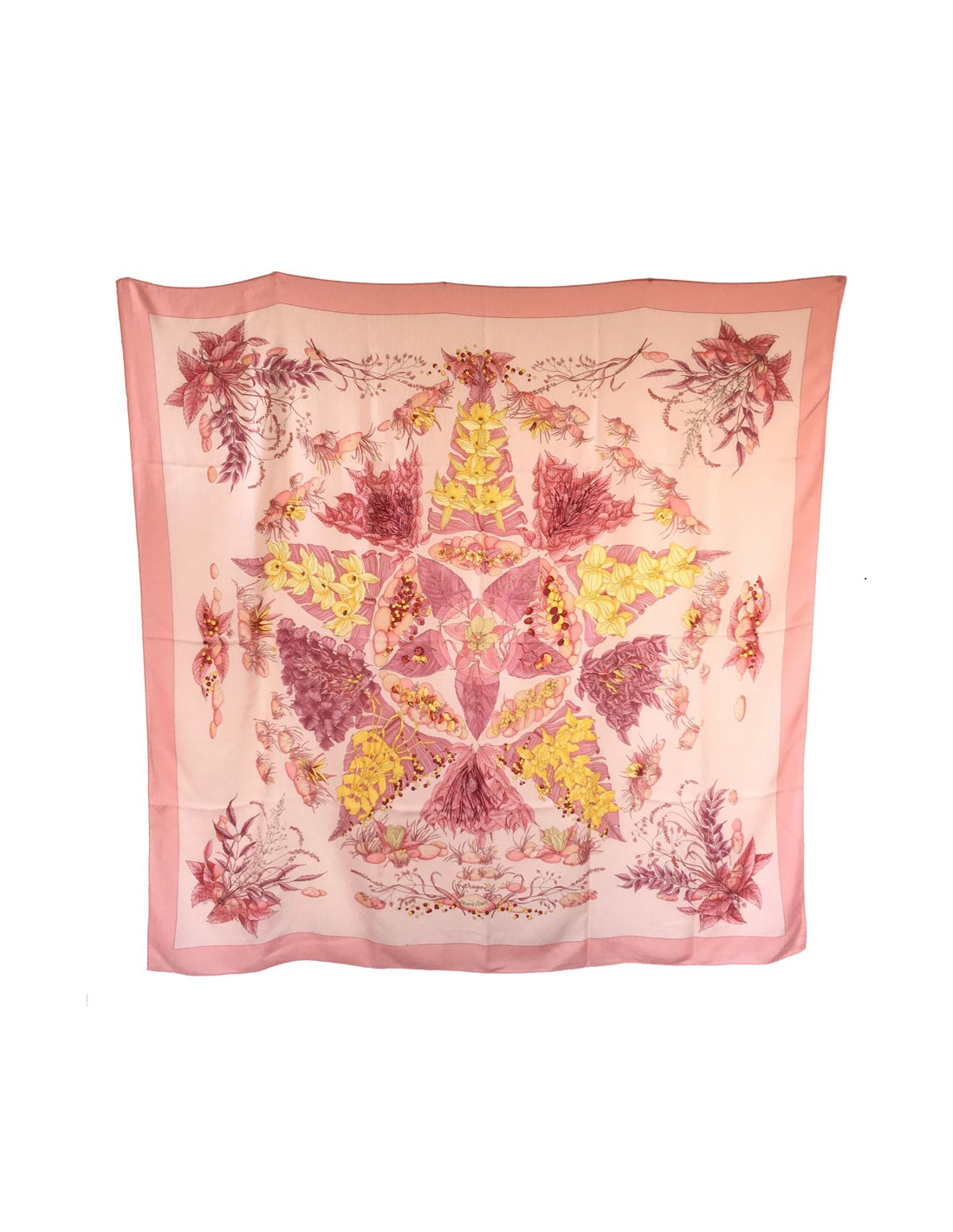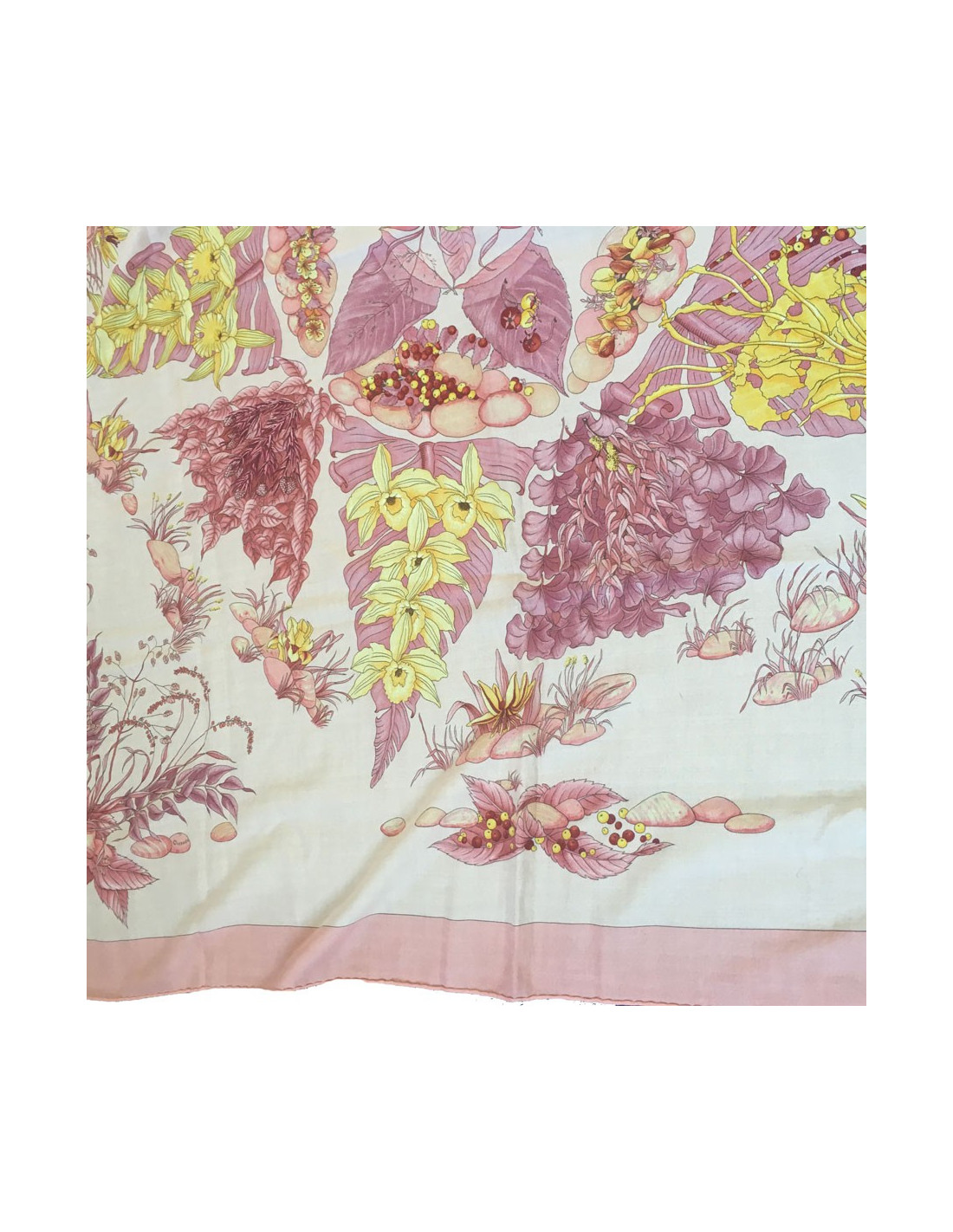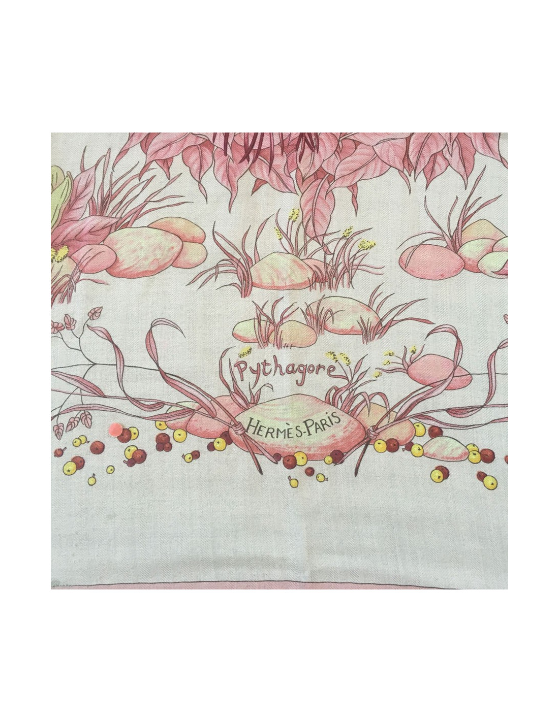 Châle "Pythagore" HERMES en cachemire et soie rose