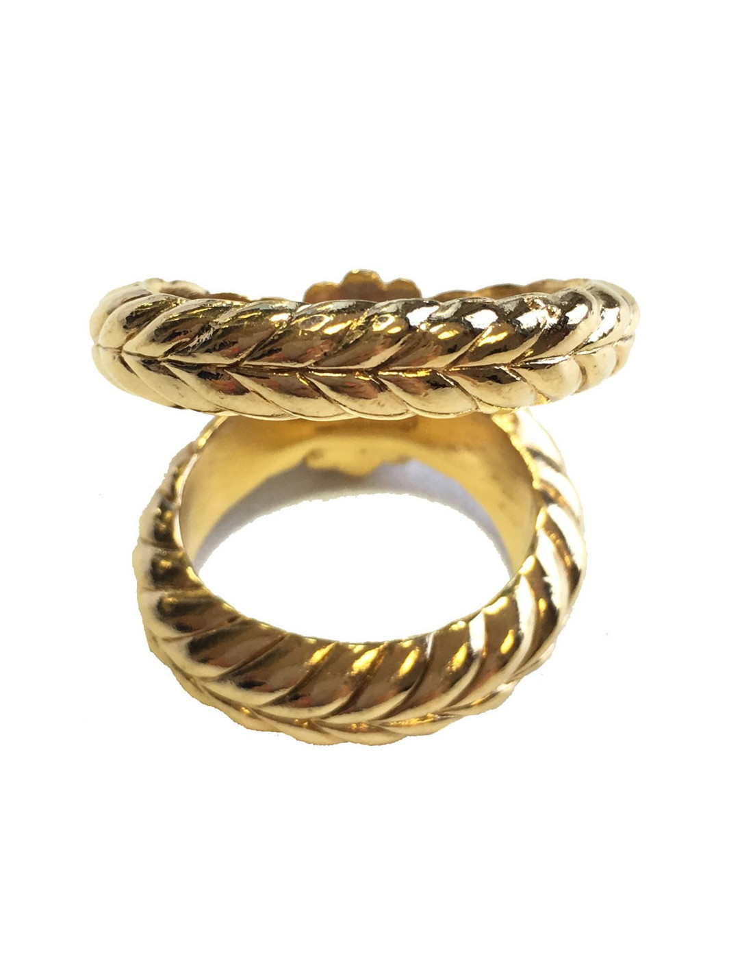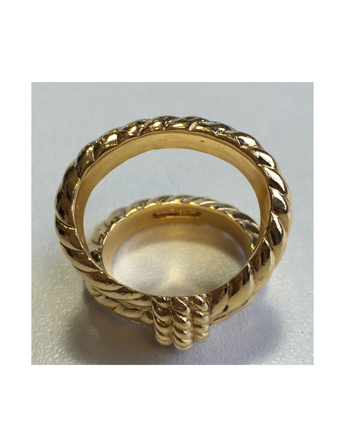 Anneau de foulard DIOR double anneau en métal doré, effet torsadé. En très bon état. Pastille de la marque présente.