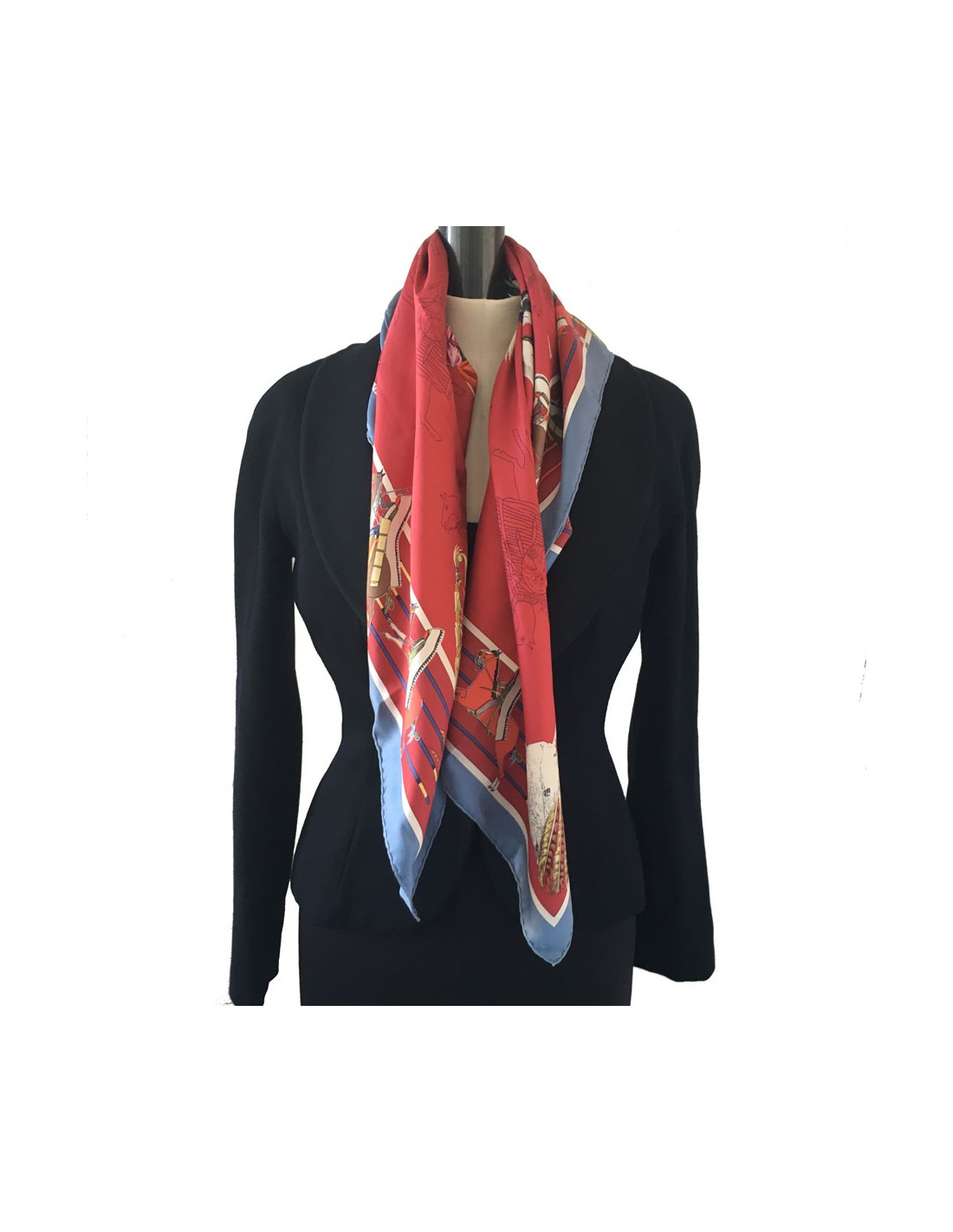 Carré HERMES "Pani La Shar Pawnee" en soie lie de vin et fond multicolore