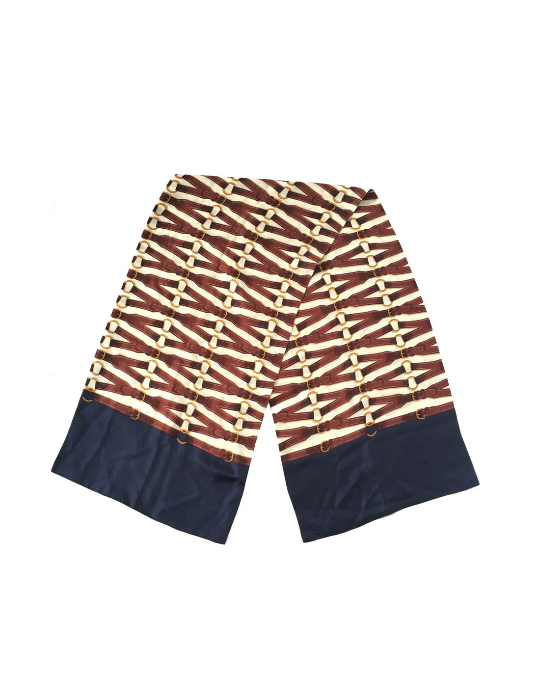 En bon état. De petites tâches sur le foulard (voir photos). Absence d'étiquette matière. Les dimensions de ce foulard homme sont 132x32,5 cm. Ce foulard de soie sera livré dans un pochon Valois Vintage Paris.