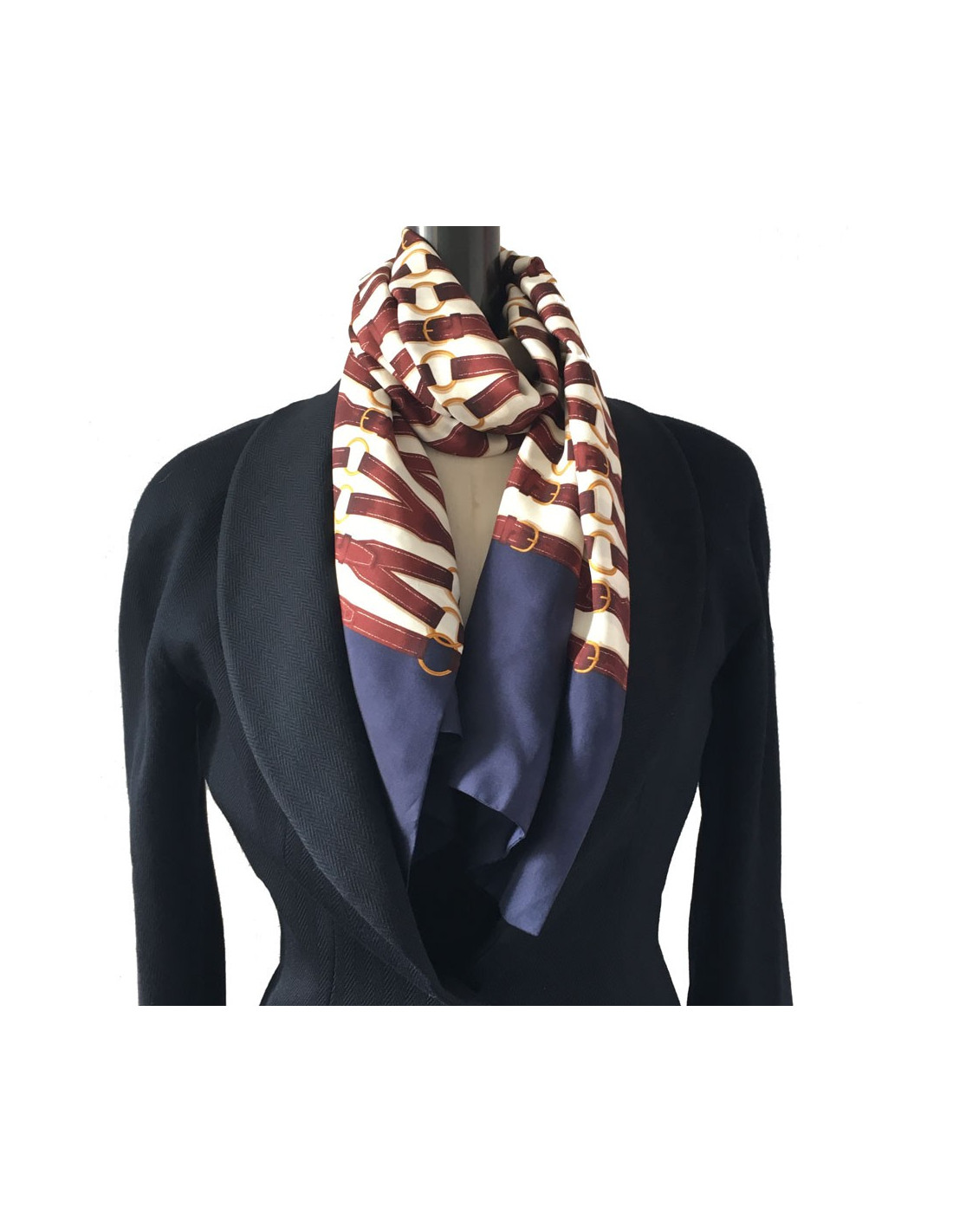 Foulard HERMES en soie ivoire, bordeaux et bleu