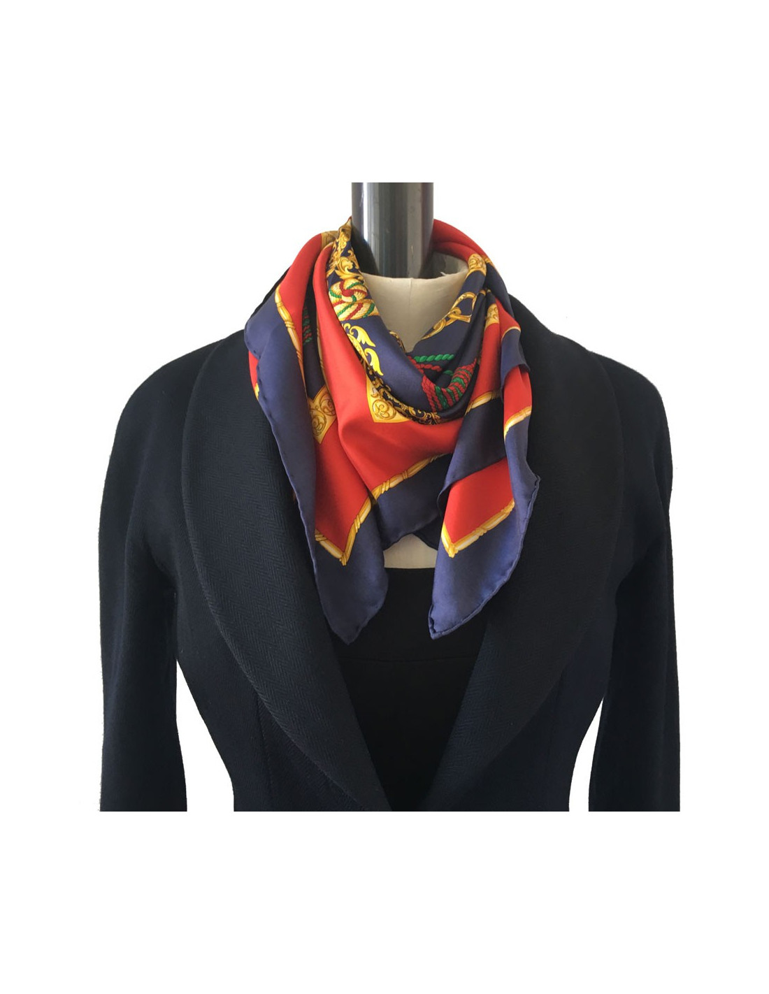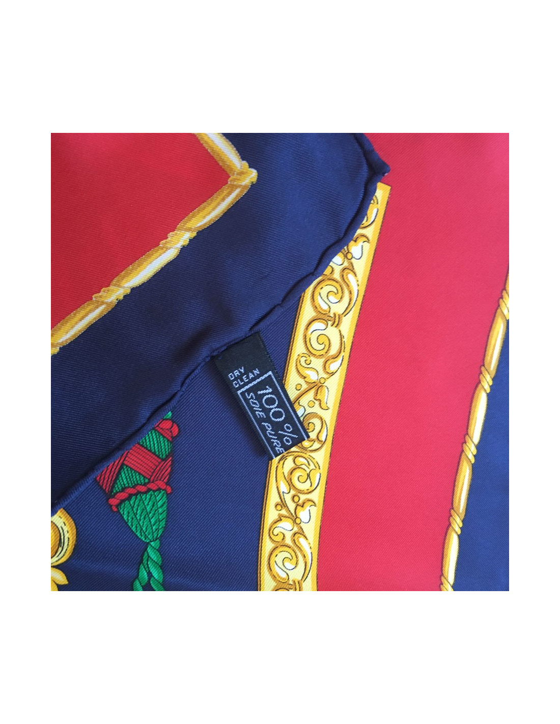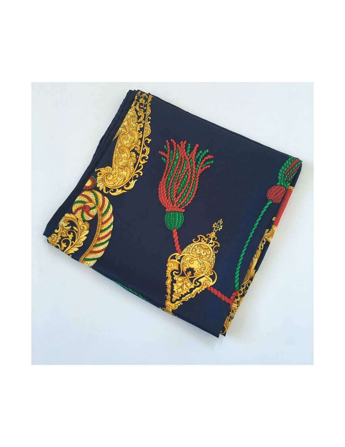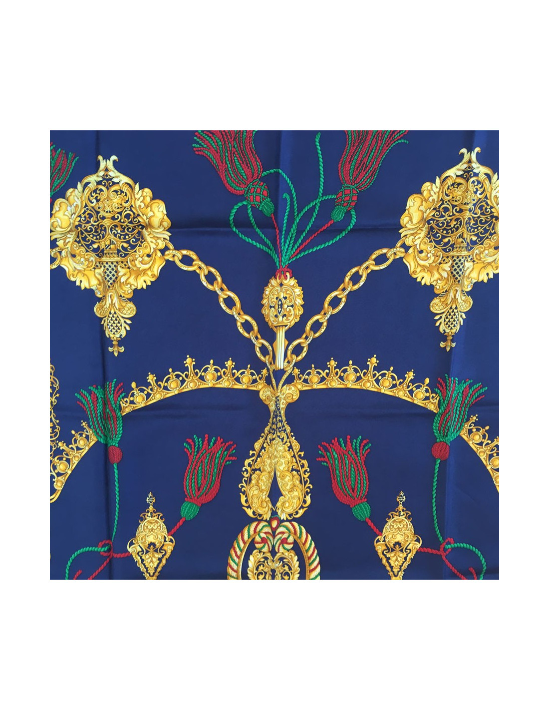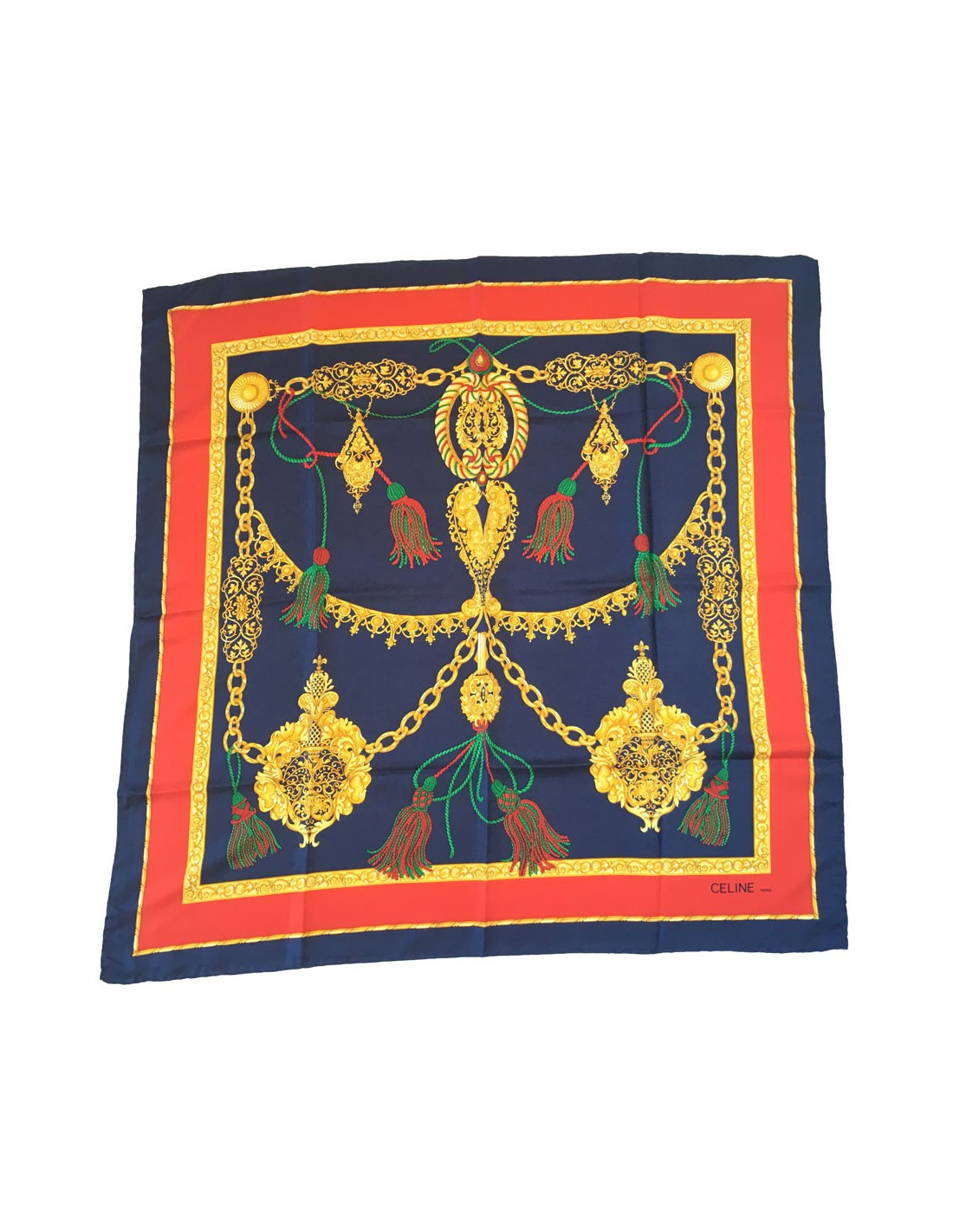 Carré CELINE en soie bleu, or et rouge
