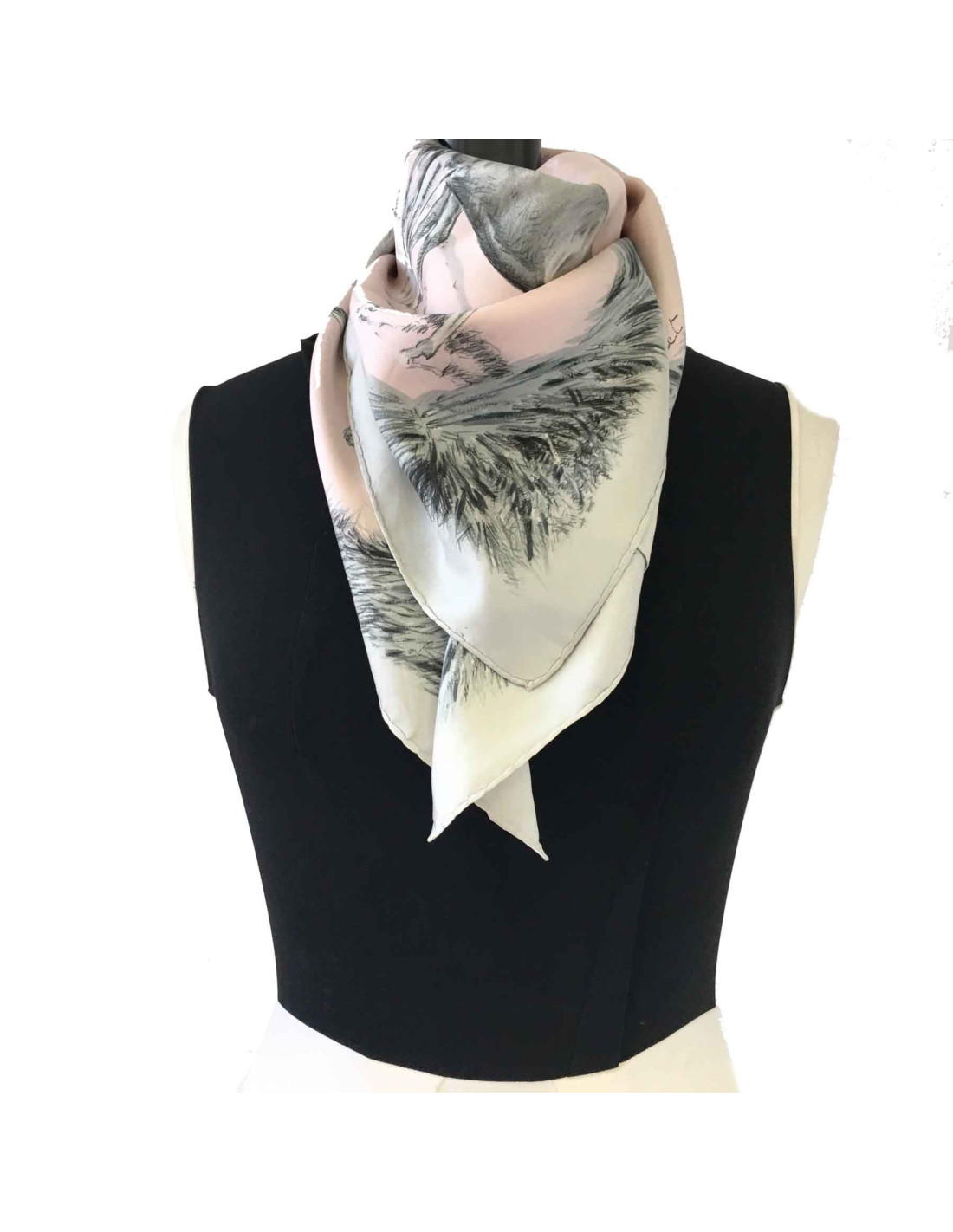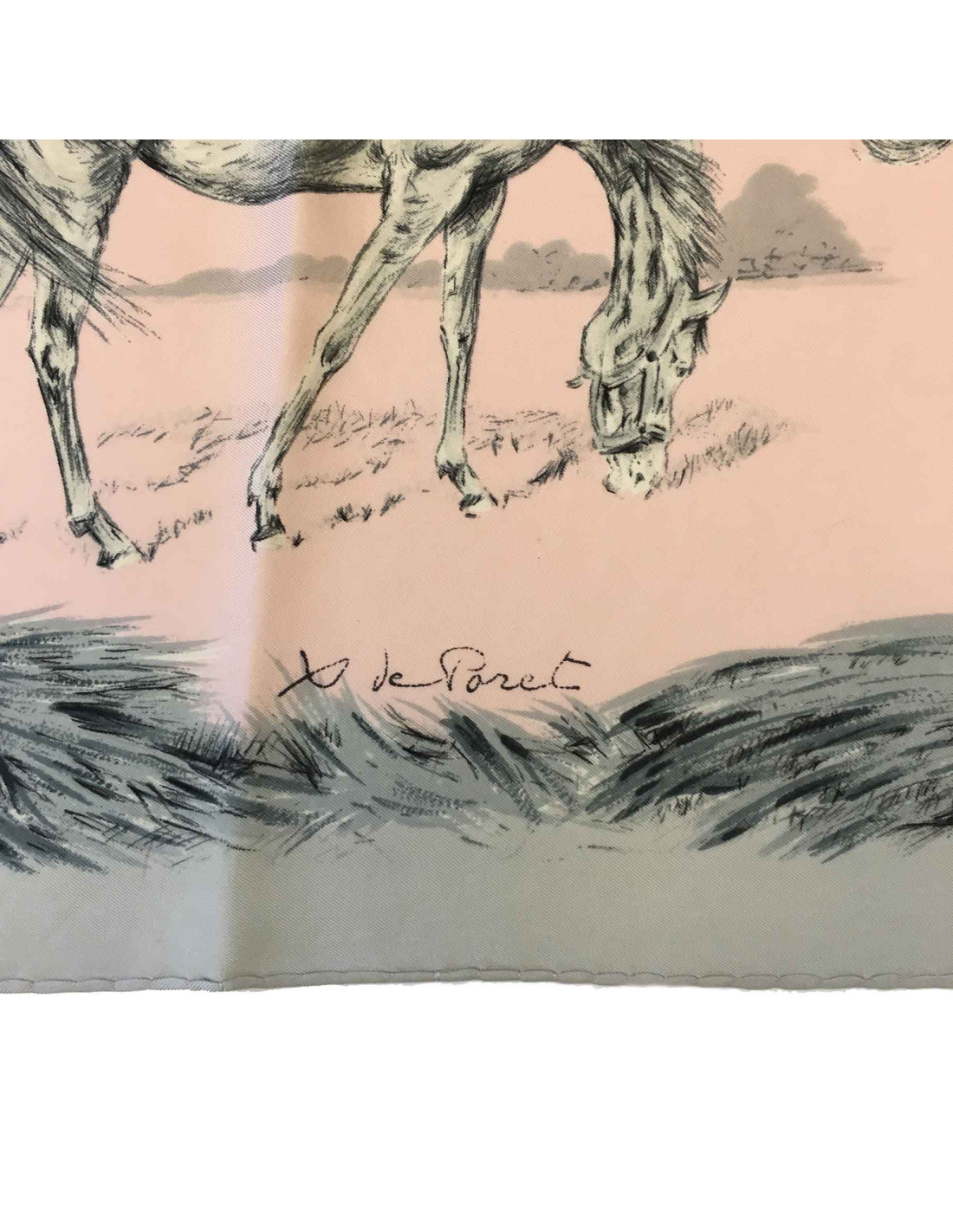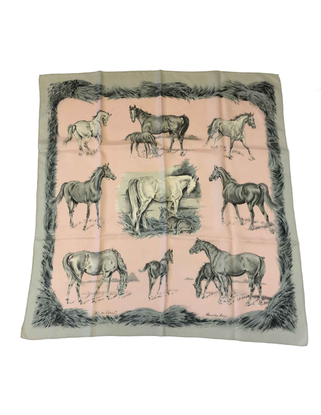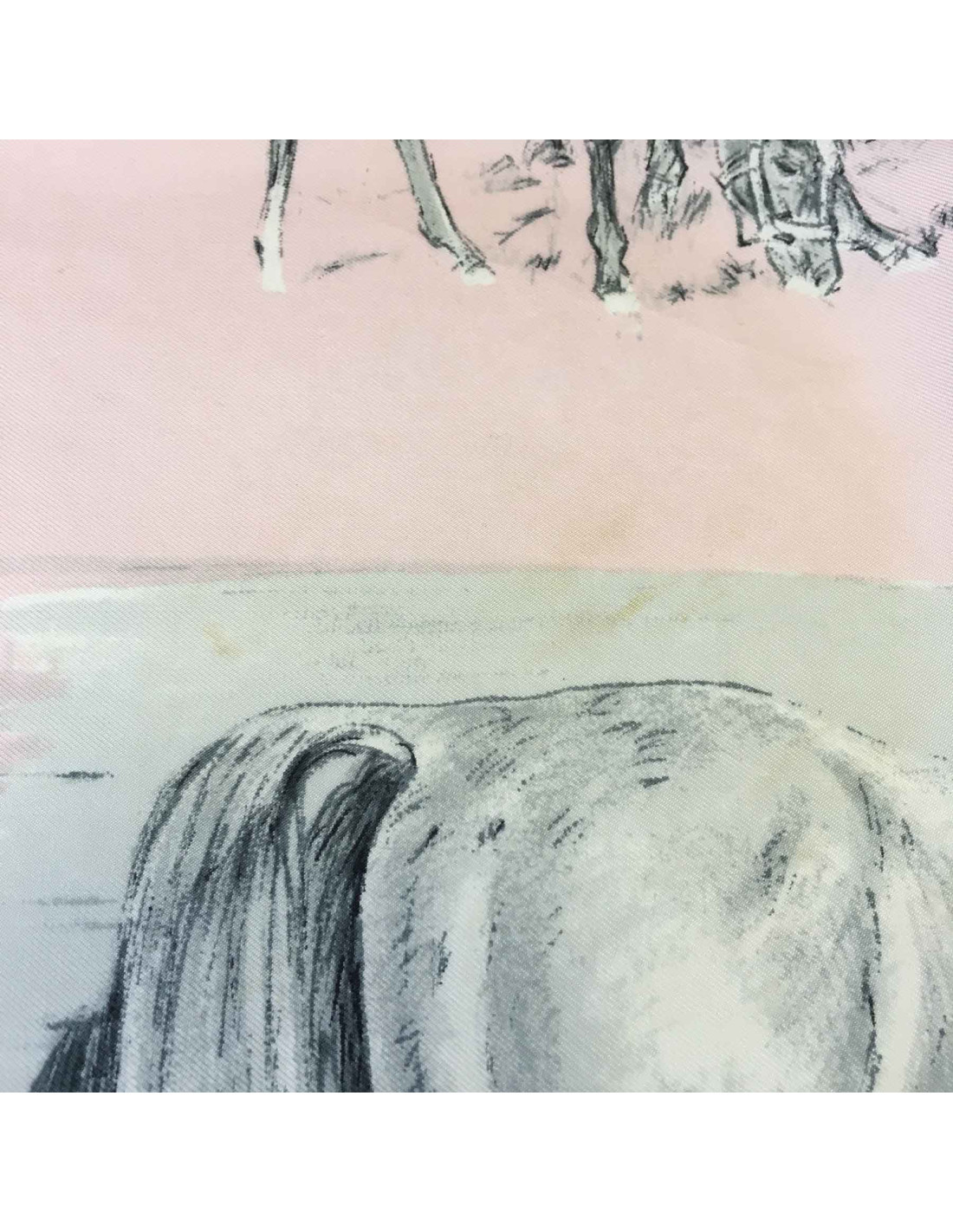 Carré HERMES 'Les poulains' en soie rose pâle et grise