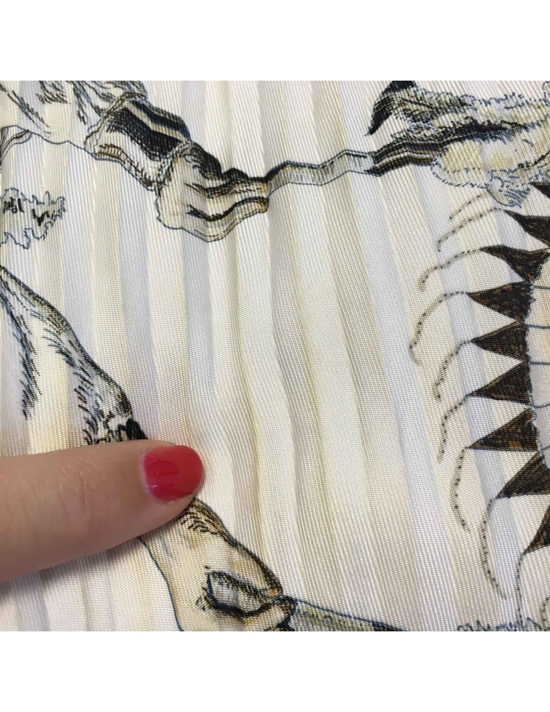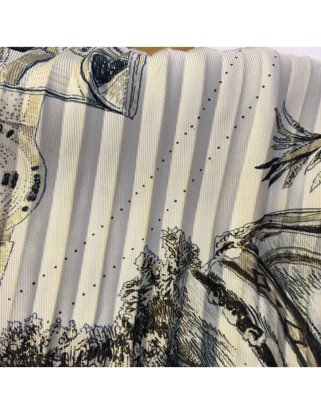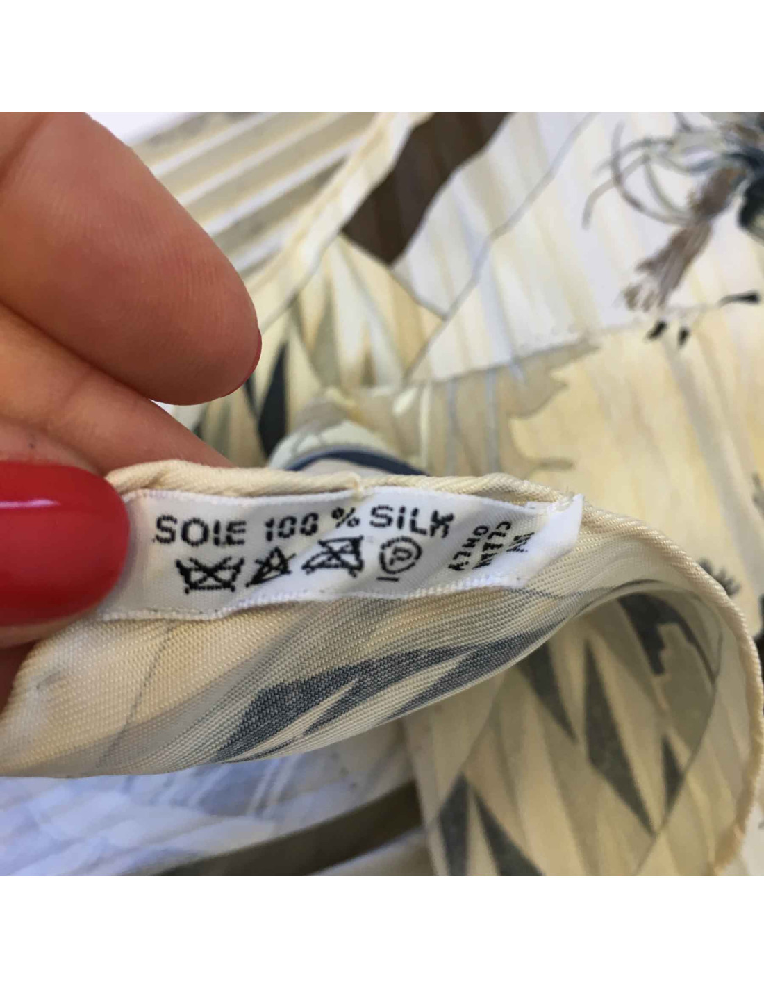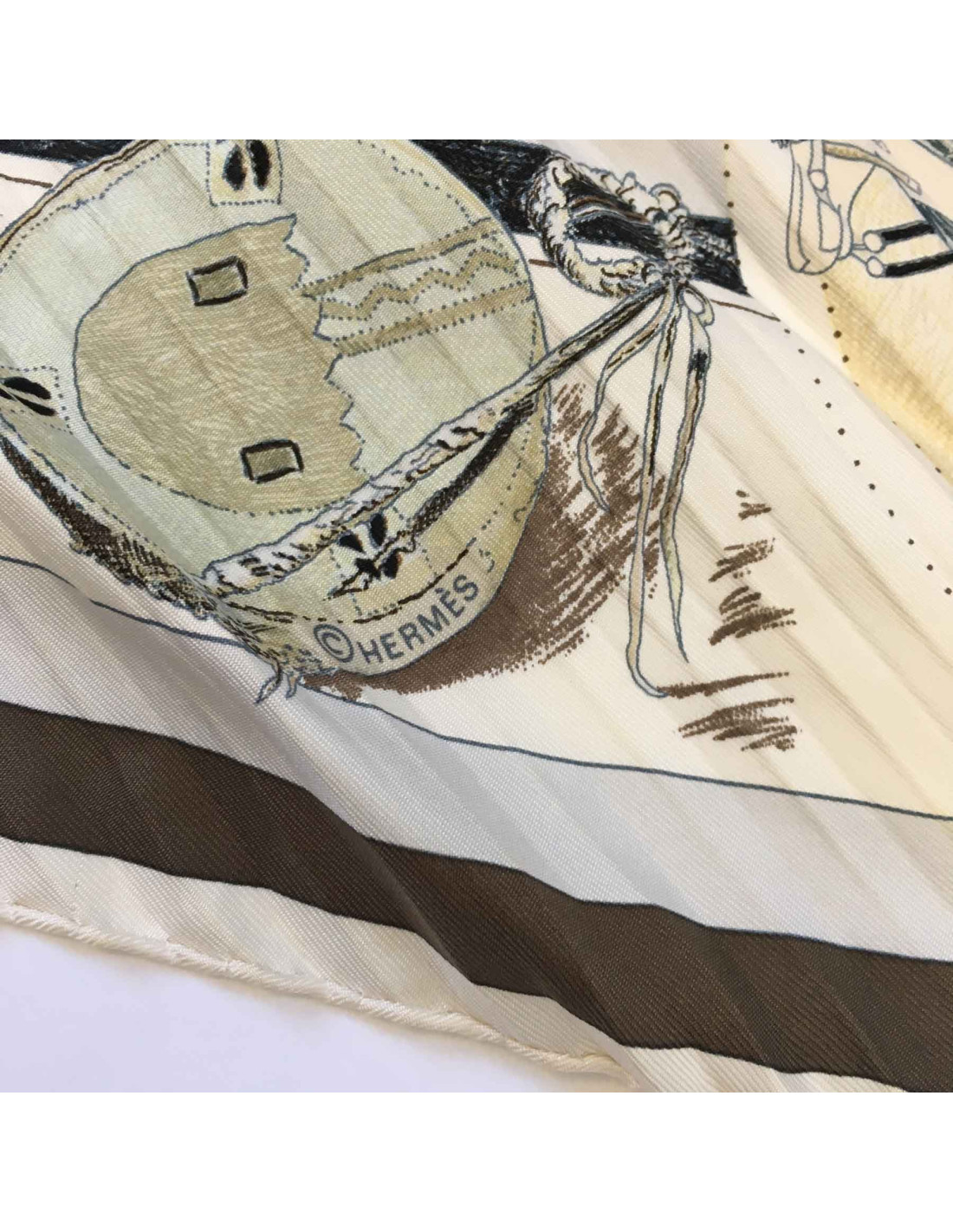 Carré Plissé HERMES "Les danses des indiens" en soie beige