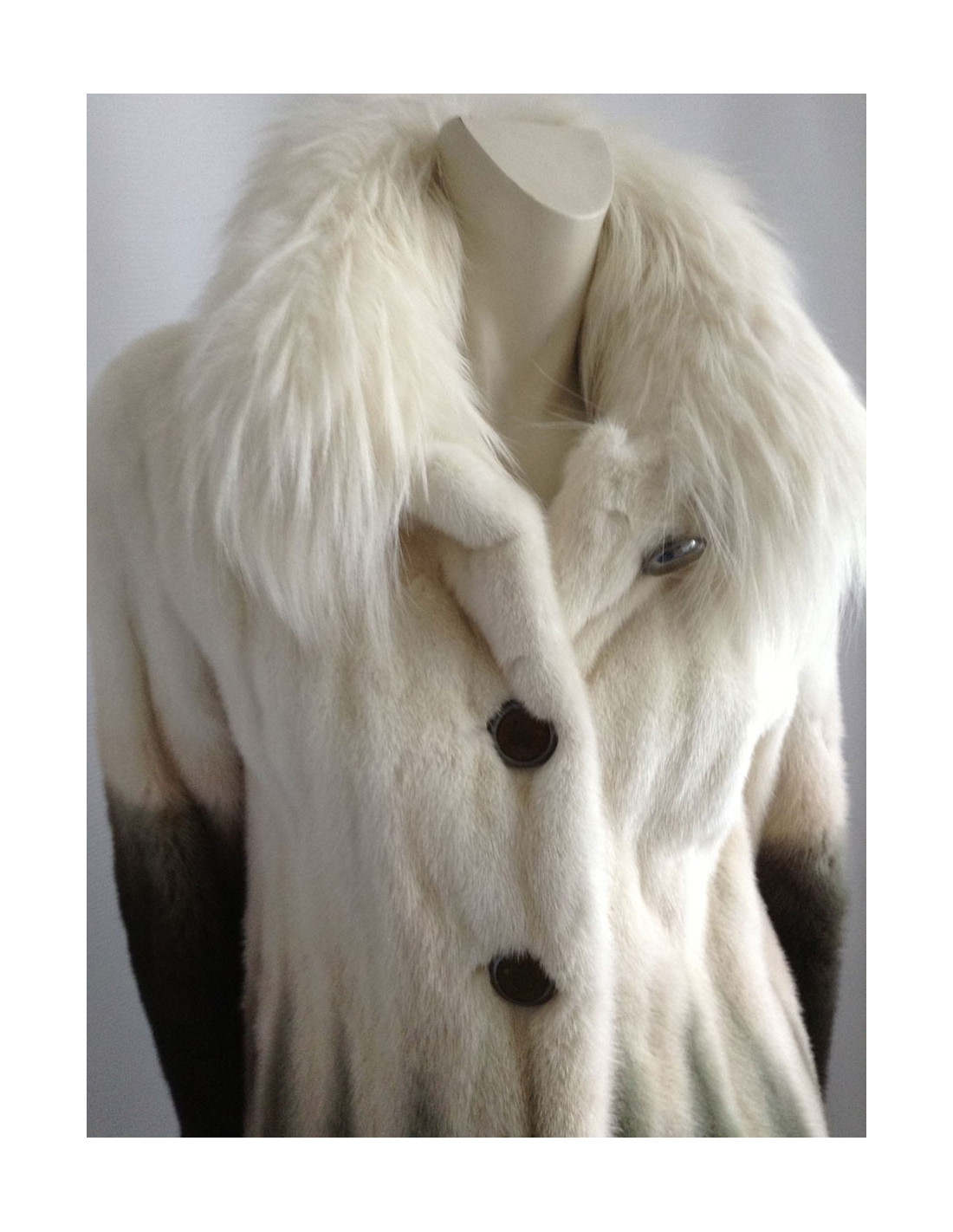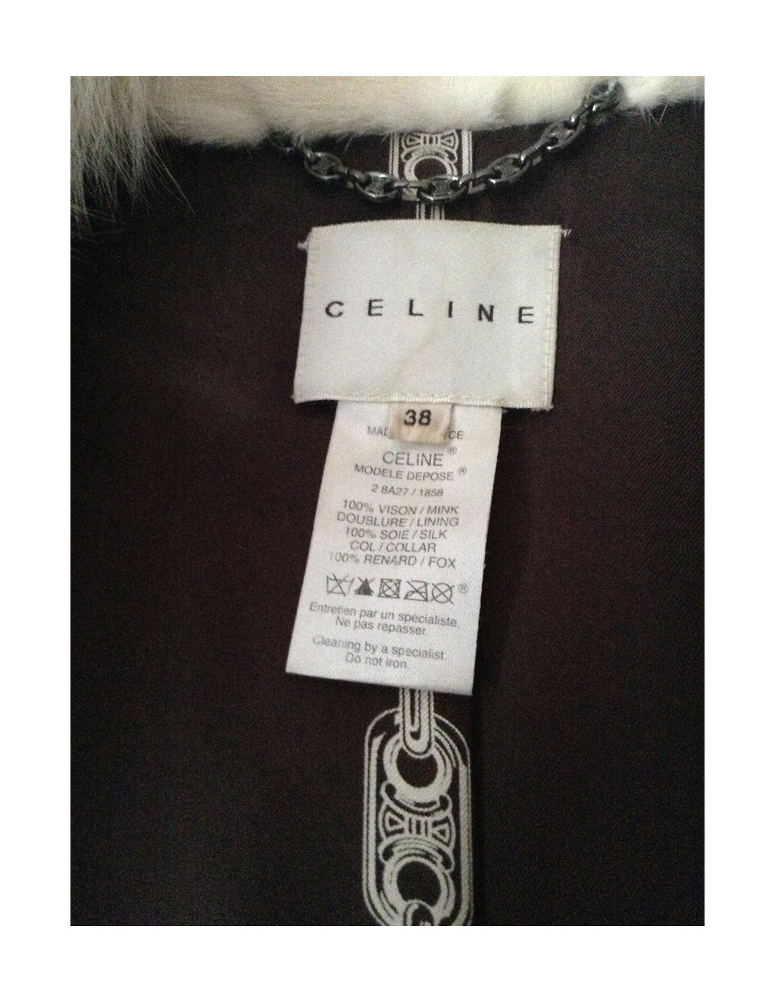 Magnifique Manteau Céline en vison 100%.Une très jolie pièce. Le Col blanc est en renard; les couleurs ont été harmonieusement choisies : marron, kaki, beige, écru; le dégradé est SUBLIME! La doublure est en soie 100% de couleur marron monogrammee Céline, THE MUST HAVE!