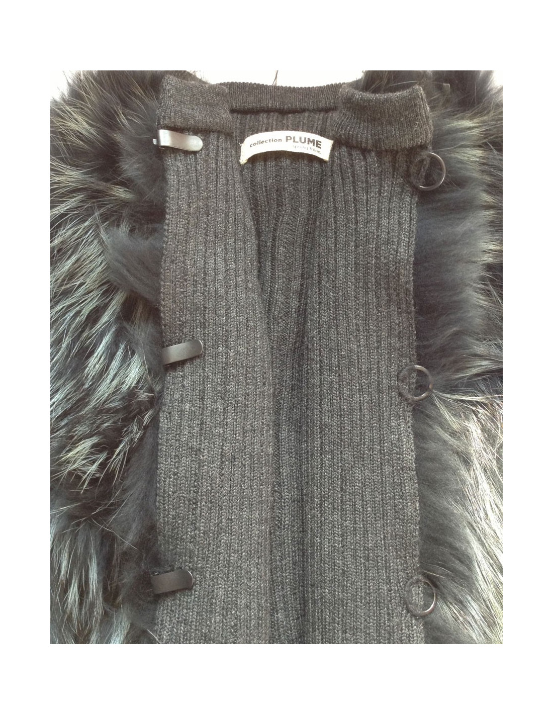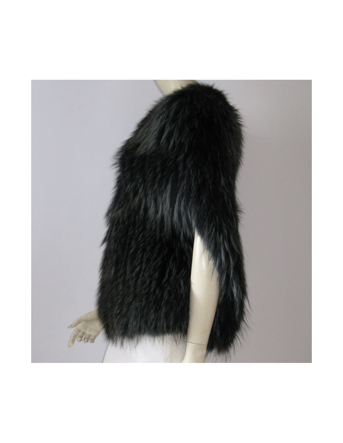 Splendide! cape SPRUNG FRÈRES "collection plume" en renard bicolore Anthracite/Vert amande, sans manches