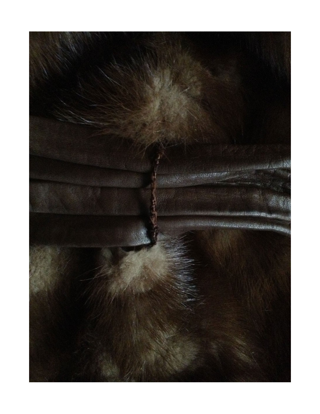 Le vison et la doublure sont en très bon état! Mais la ceinture de l'intérieur et les passants sont légèrement usés et il y a un trou dans la poche gauche, voir photo