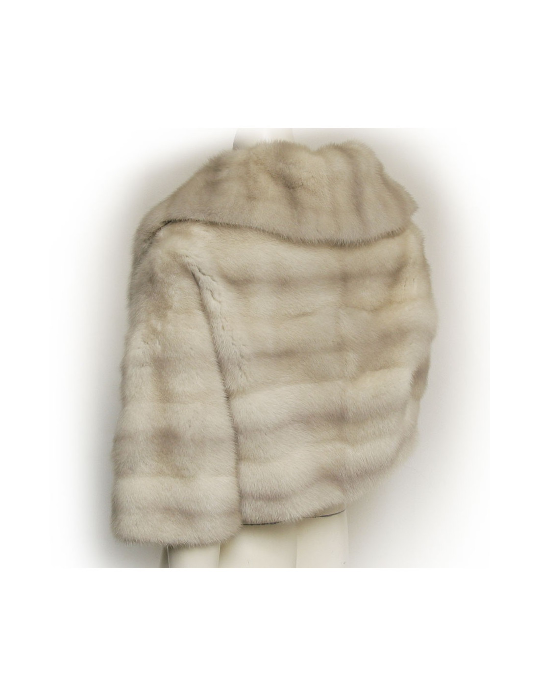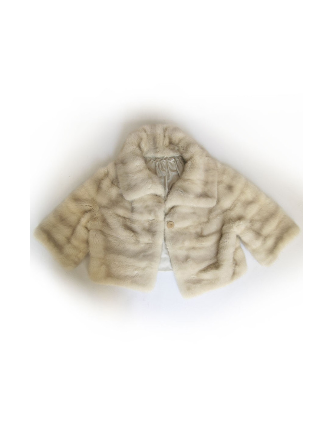 Magnifique veste en vison de couleur écru dégradé de gris, Ch. Salganick, Monte Carlo. Taille 38. Pas d'étiquette de taille. Doublure en soie. Fermeture 1 bouton nacré. 1 poche intérieure. En très bon état.