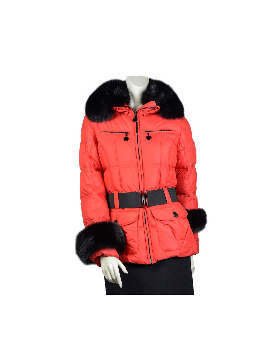 Doudoune VUARNET T42 rouge col renard