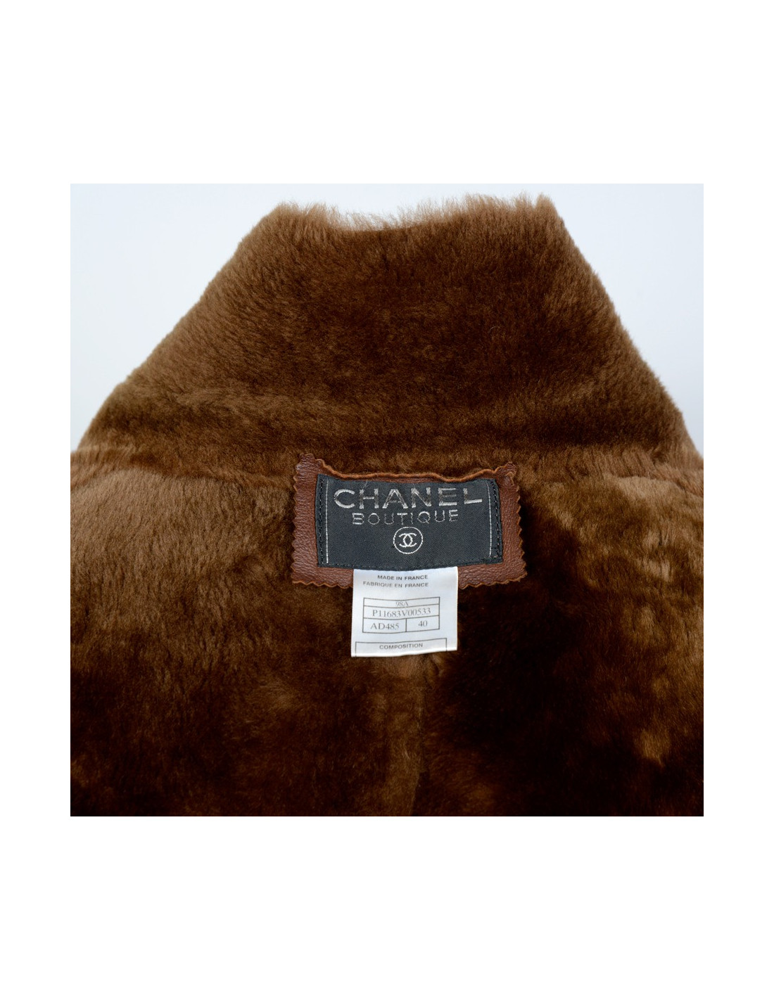 Magnifique manteau Chanel en peau retournée de couleur marron. Taille 40. Il dispose de deux poches plaquées à l'avant. Fermeture 5 boutons siglés "CC". Les manches sont reglables, vous pouvez les retournées à votre guise. En très bon état.
