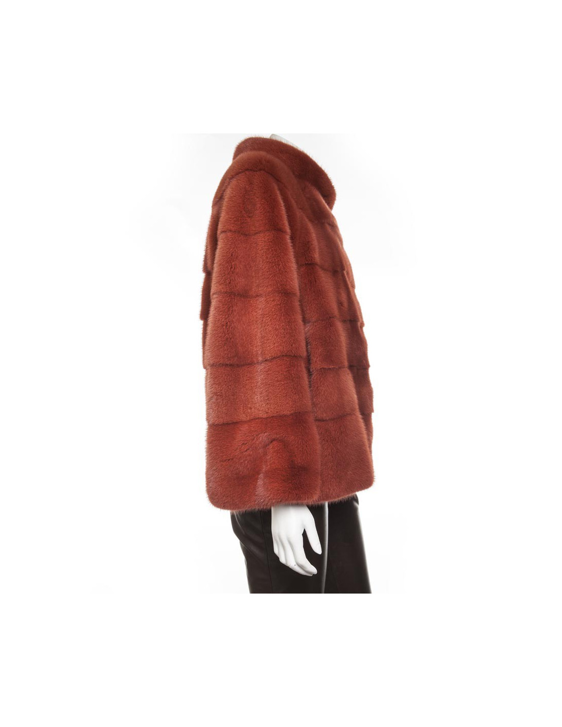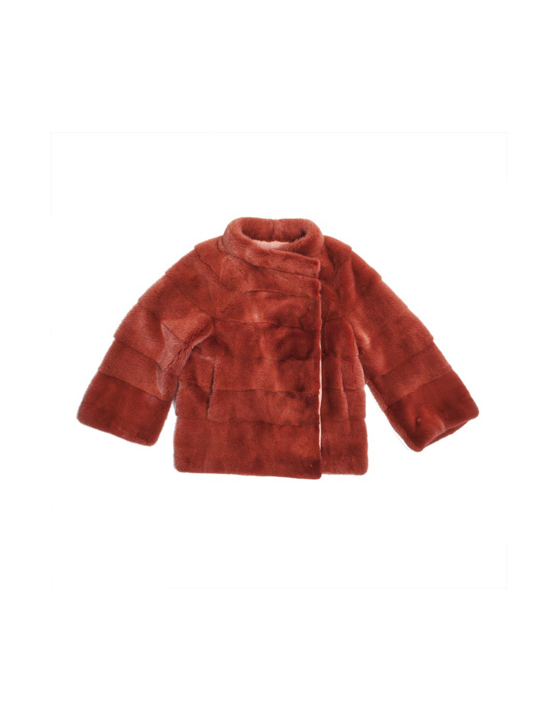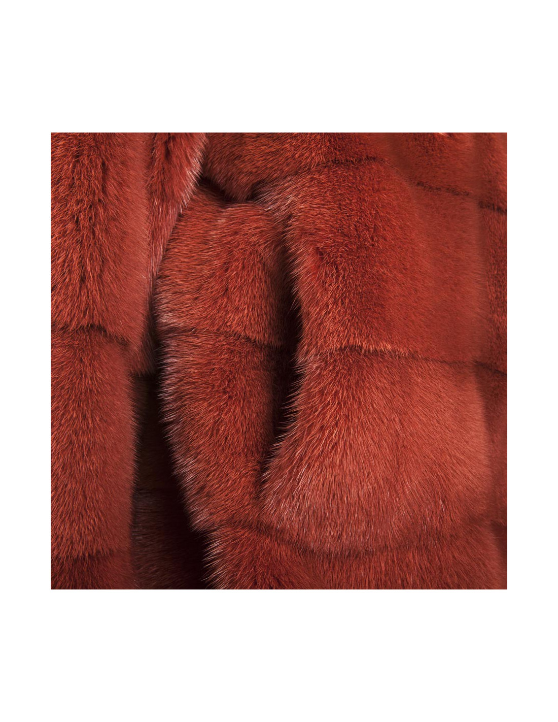 Magnifique veste en vison Place.....,couleur rouille doublée de mousseline de soie couleur saumon. elle se ferme juste au niveau du col par un crochet. Deux poches sur les côtés.