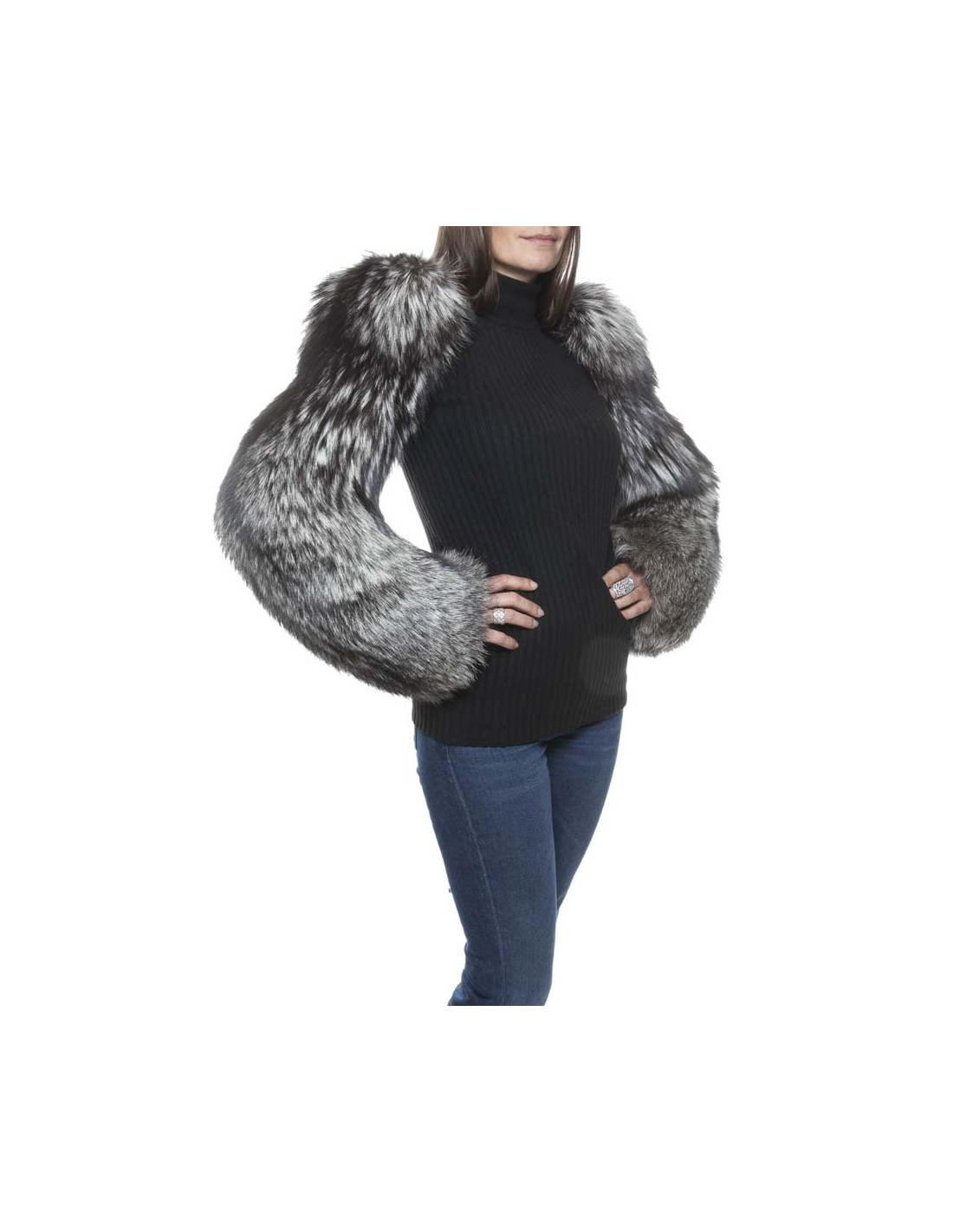 Sublimes manches en renard argenté Paule KA avec des épaulettes se portent façon boléro, elles se nouent dans le dos. Taille 36 fr