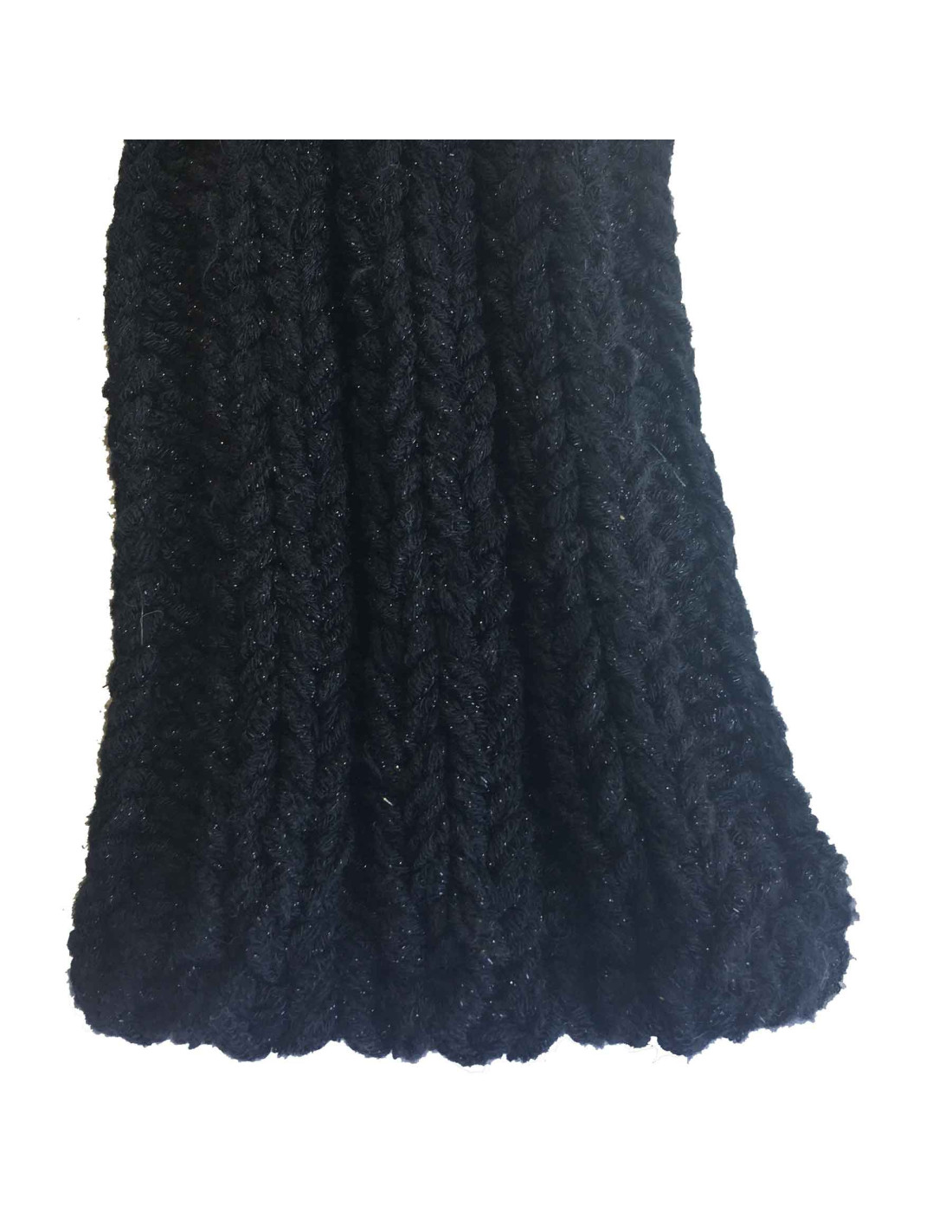 Très belle paire de longues mitaines T2 Chanel tricotées en coton, cachemire et soie noire rehaussé par des fils argentés.
