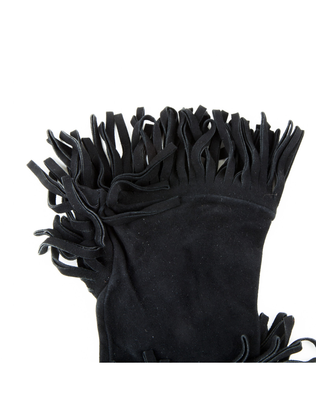 Gants à franges HERMES en daim noir mi-long T. 7,5, à franges.
