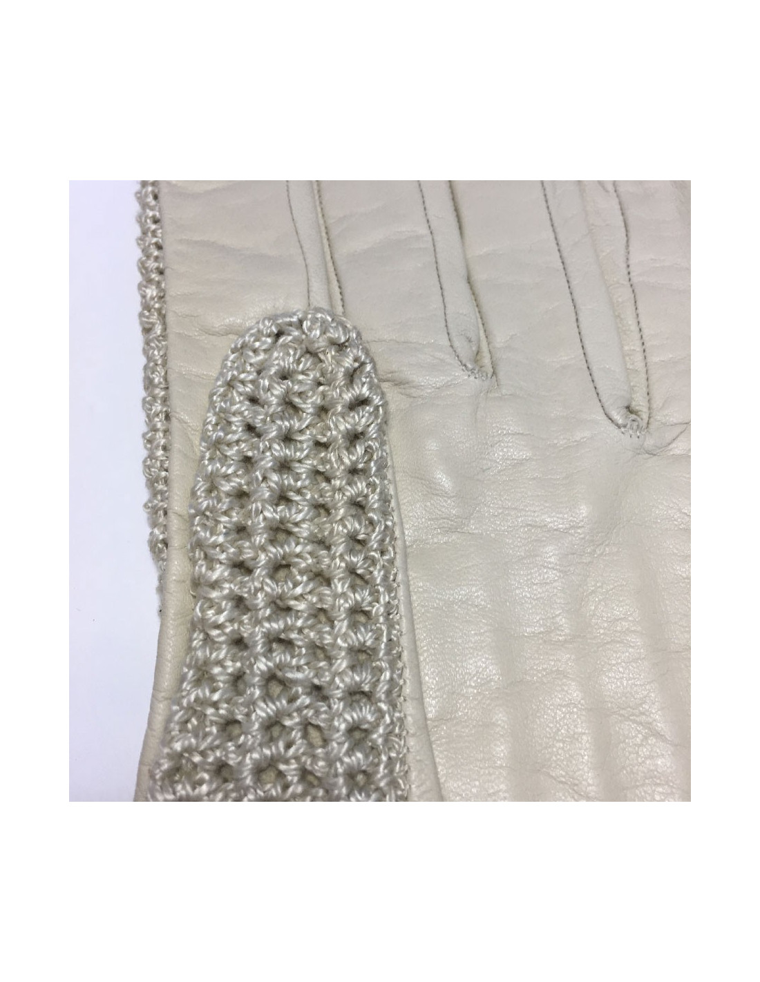 Gants CHANEL T7,5 en chevreau et crochet crème