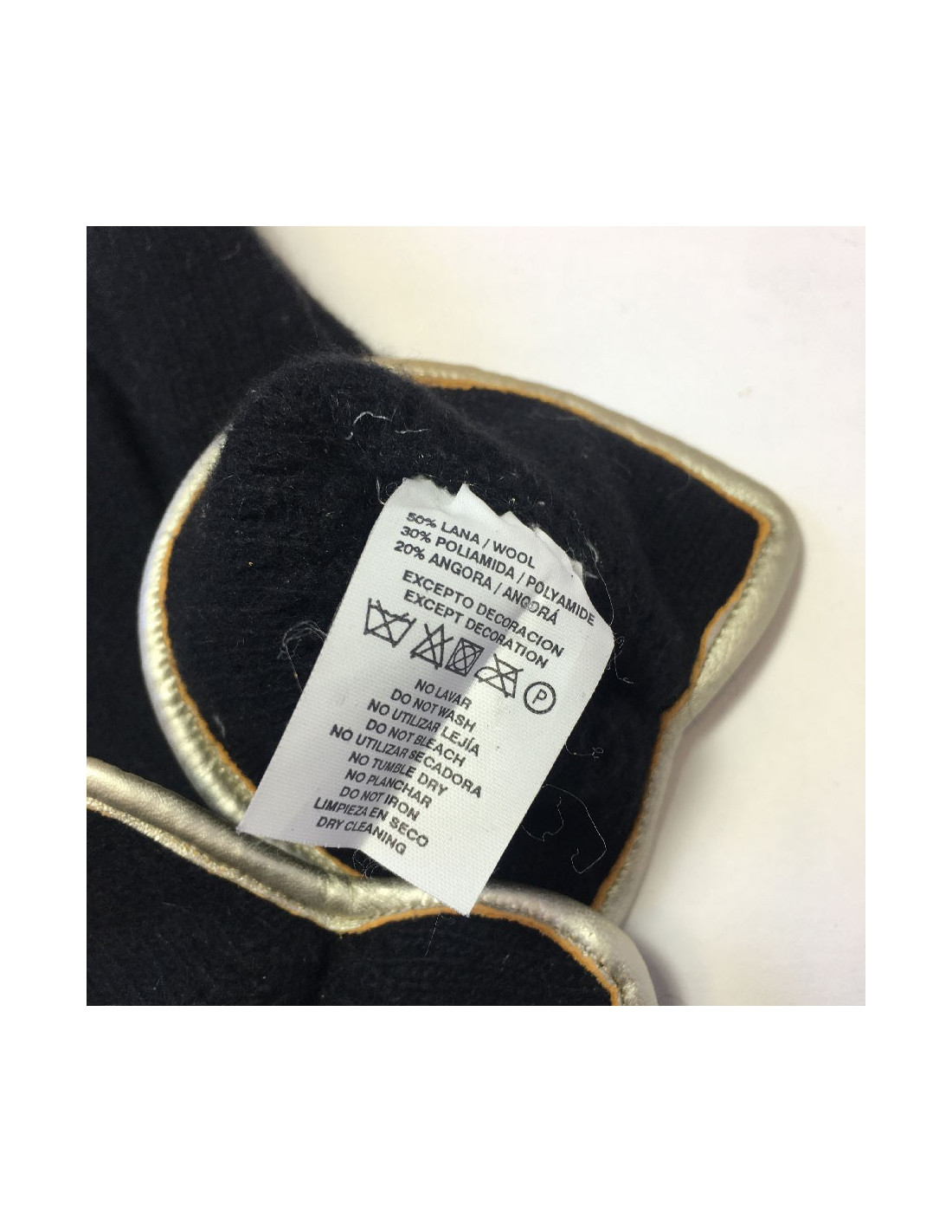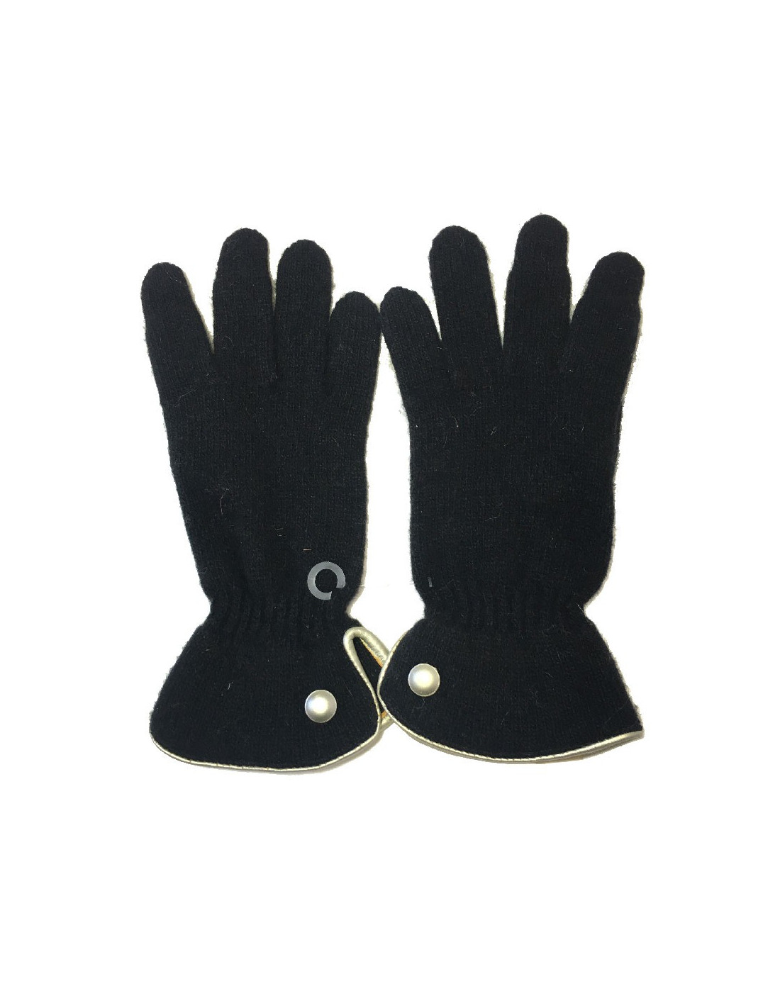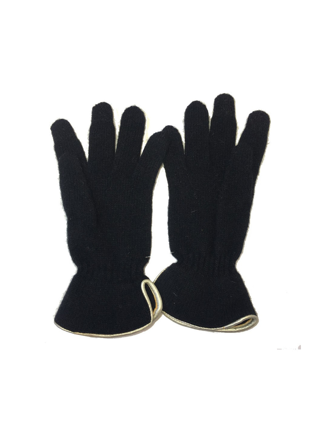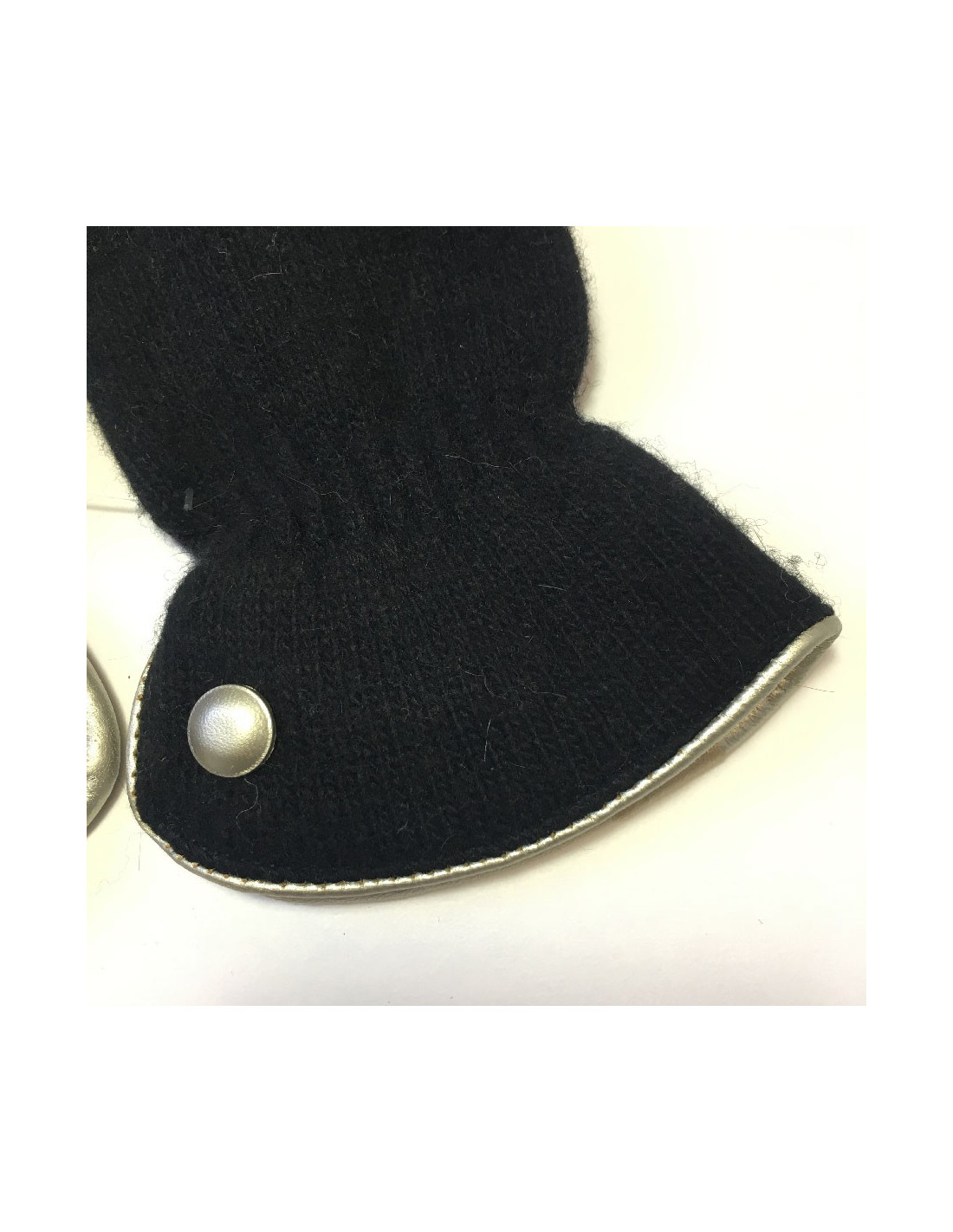 Gants Muriel en laine noire, polyamide et angora noir. Contour du poignet en cuir doré.