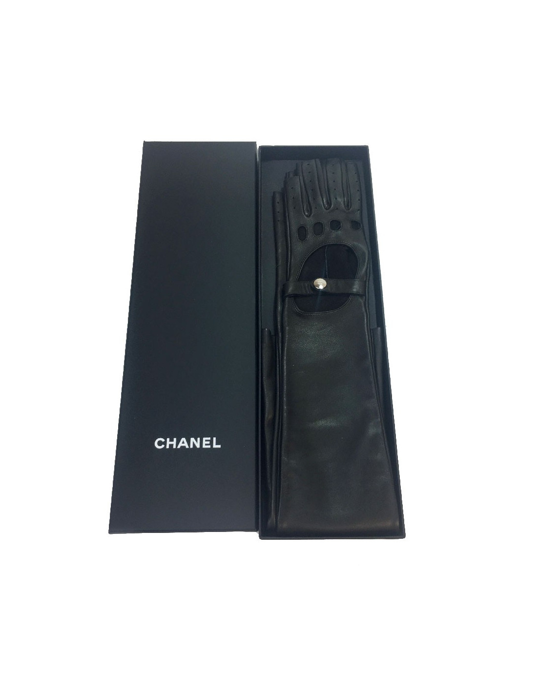 Longues mitaines CHANEL T7 en cuir d'agneau noir