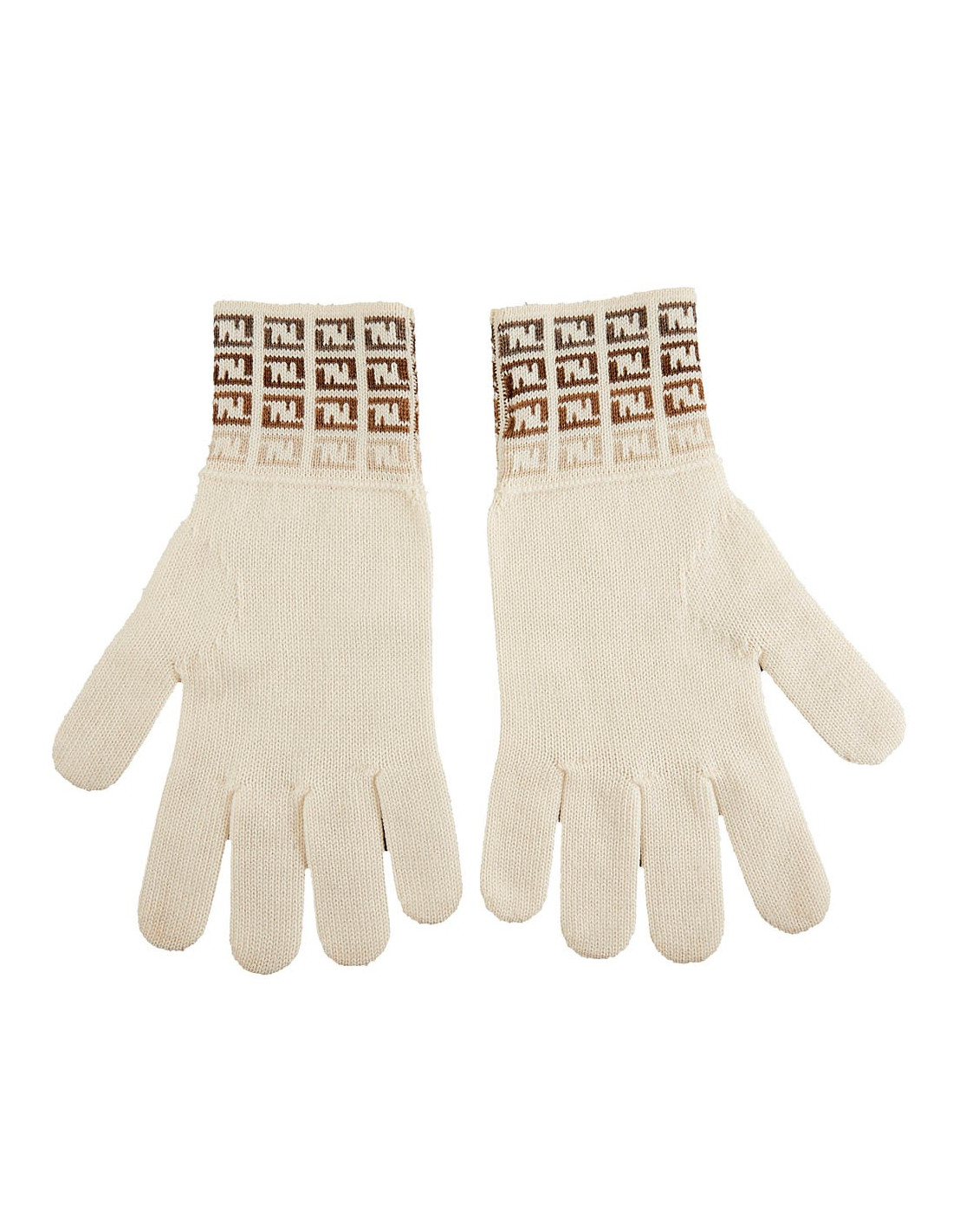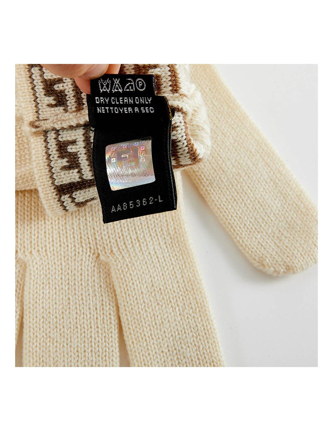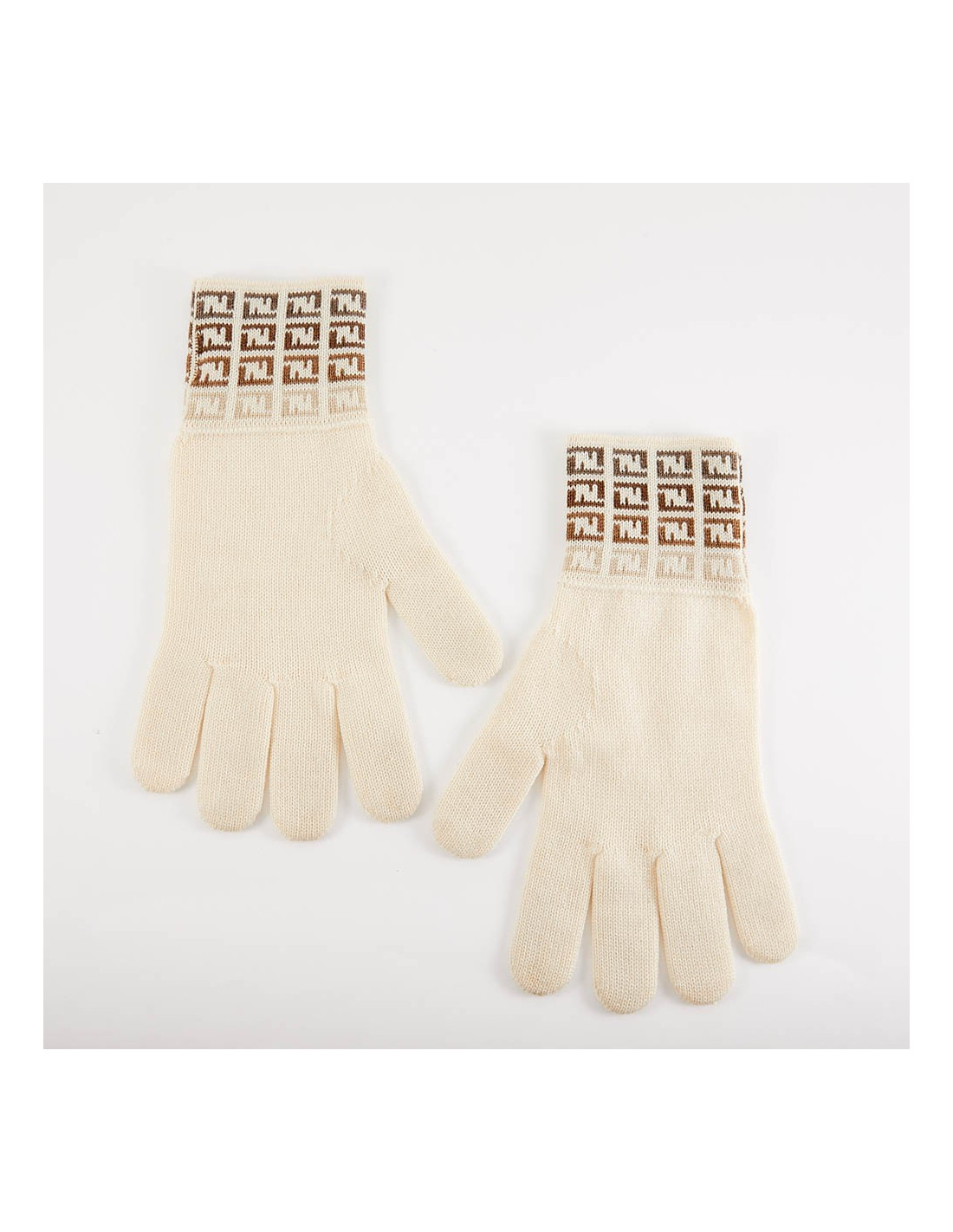 Gants en laine écru. Au poignet le célèbre logo Fendi. Ils sont neufs.