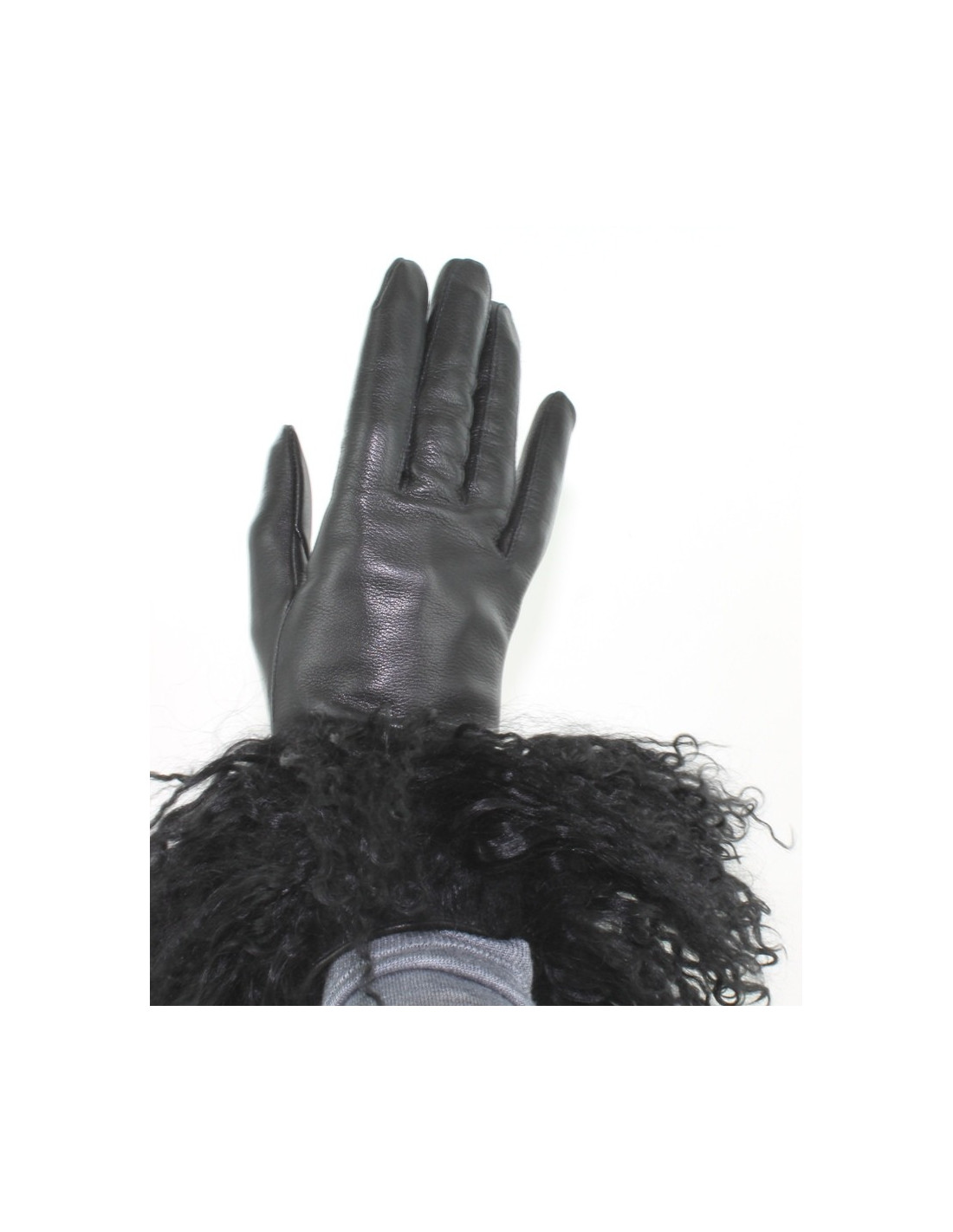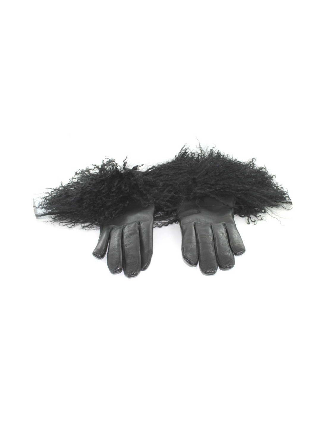 Gants BALMAIN noirs en cuir et poils de mouton