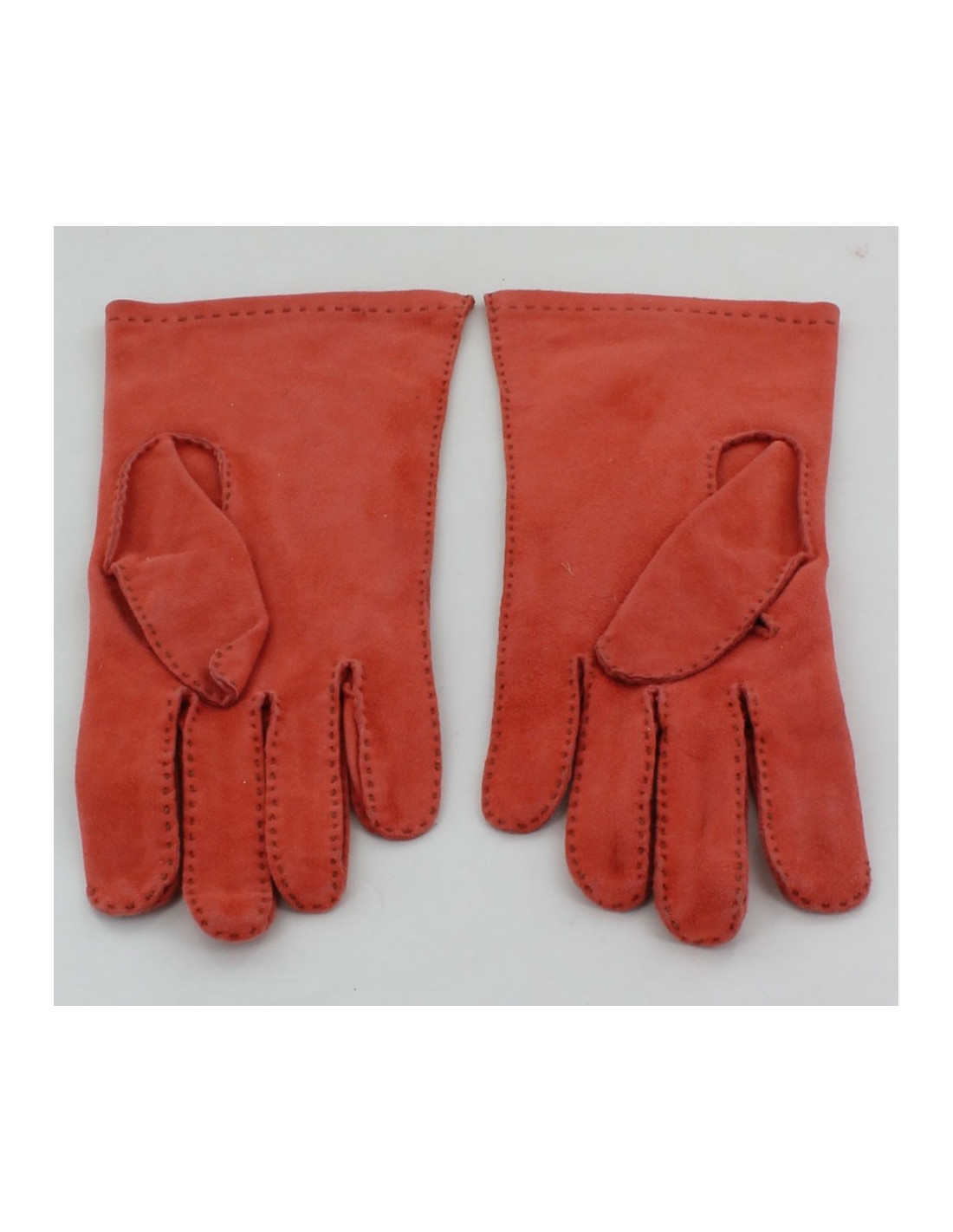 Gants HERMES en veau velours orange T6,5