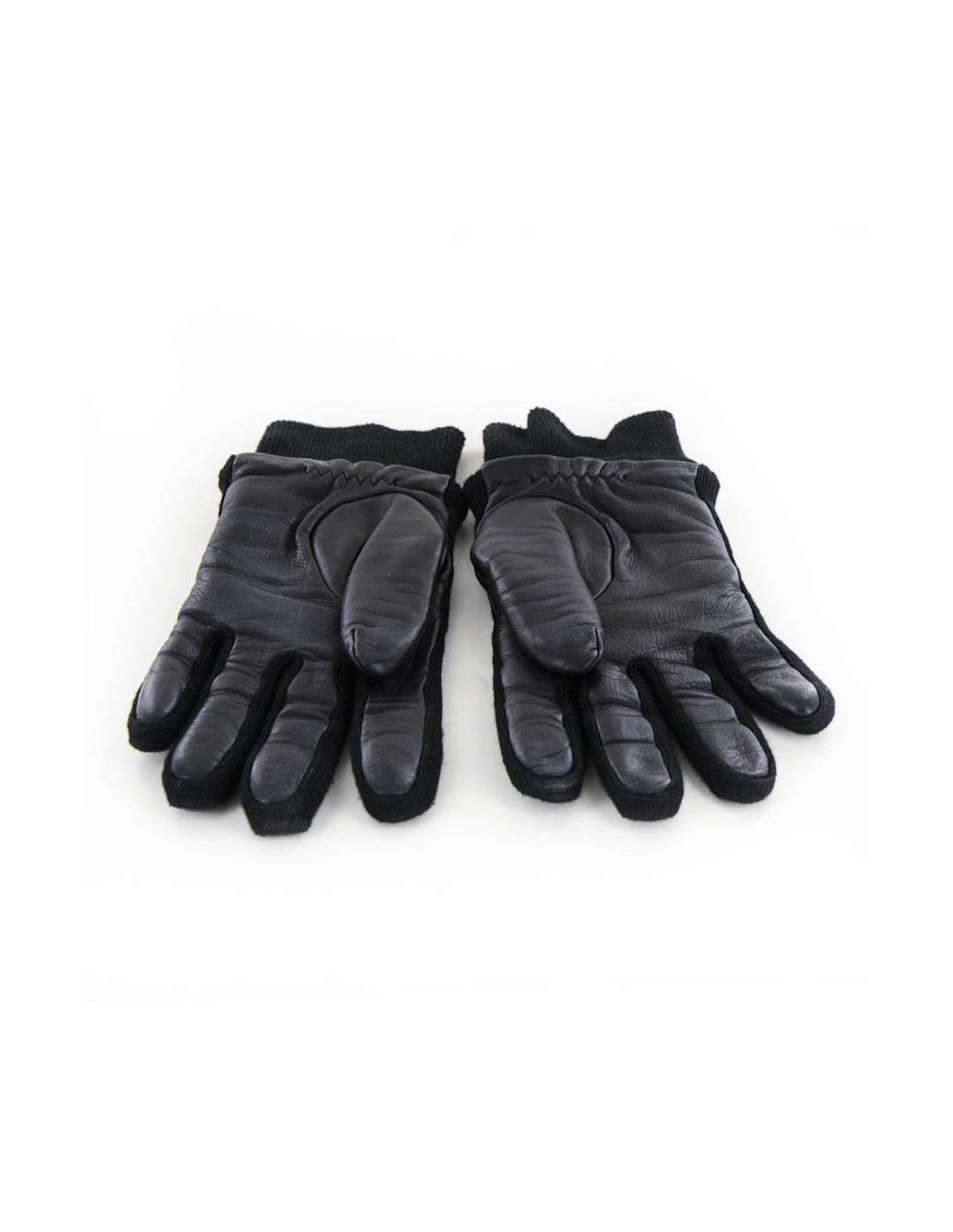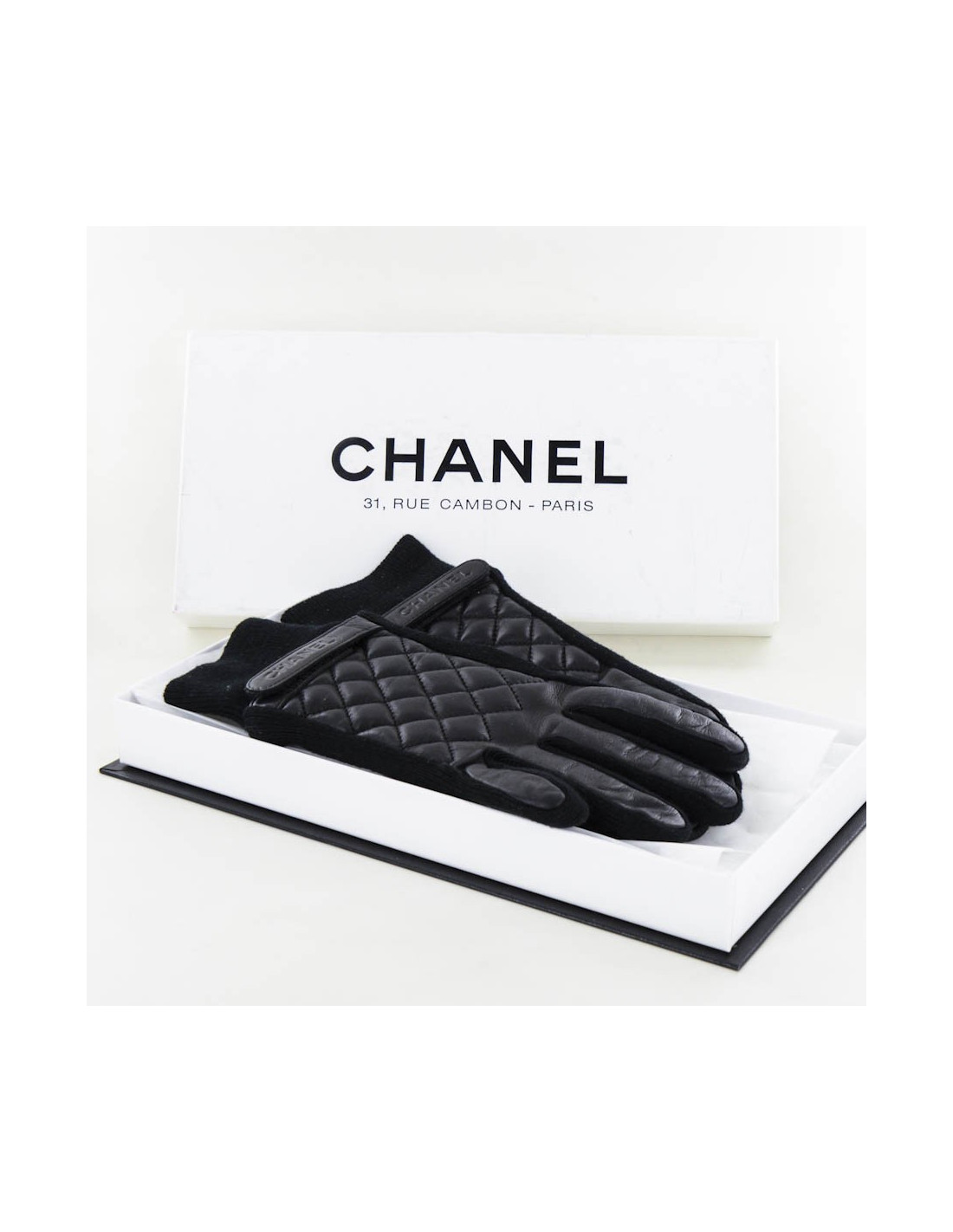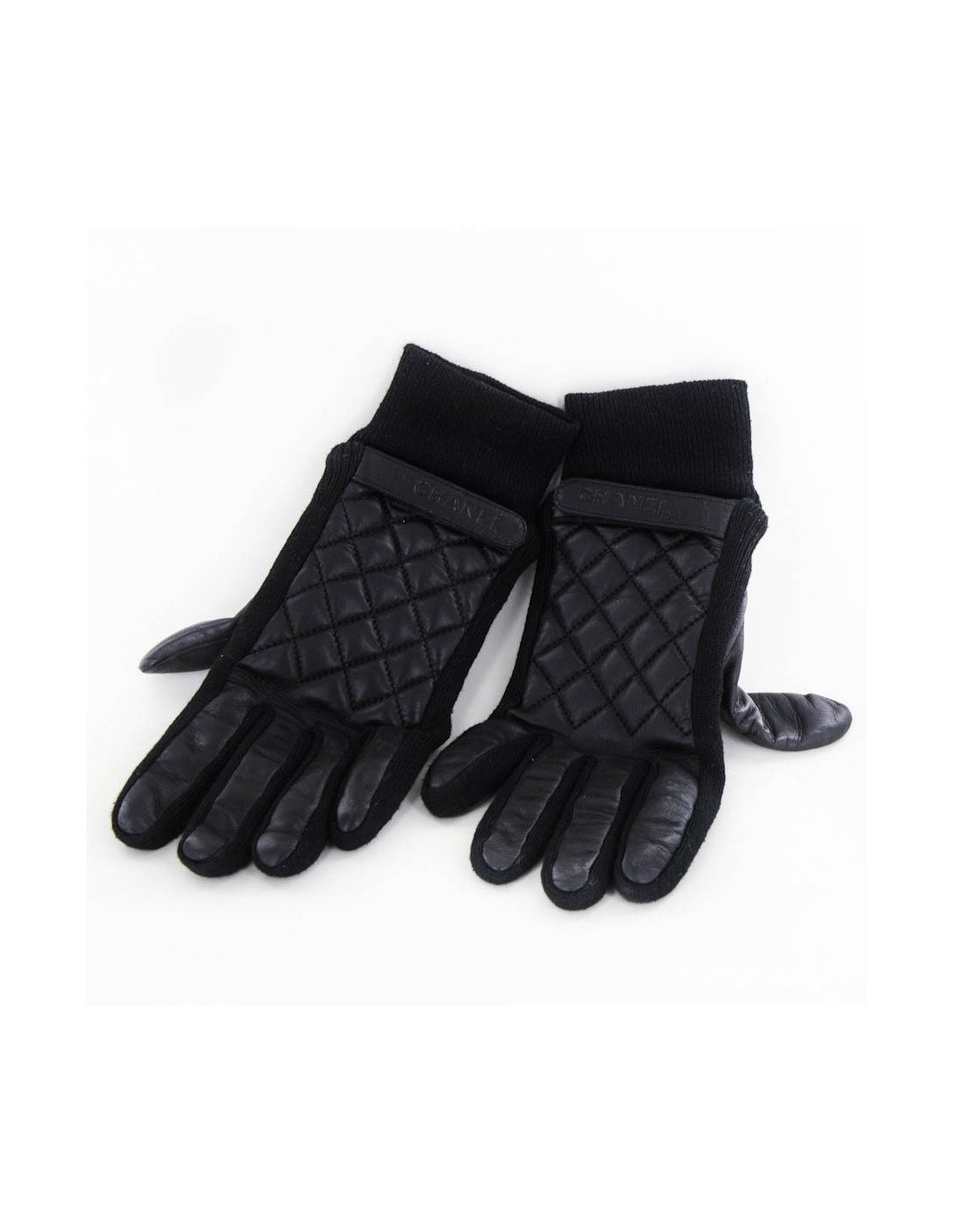Paire de gants CHANEL T 7 cuir d'agneau noir et cachemire