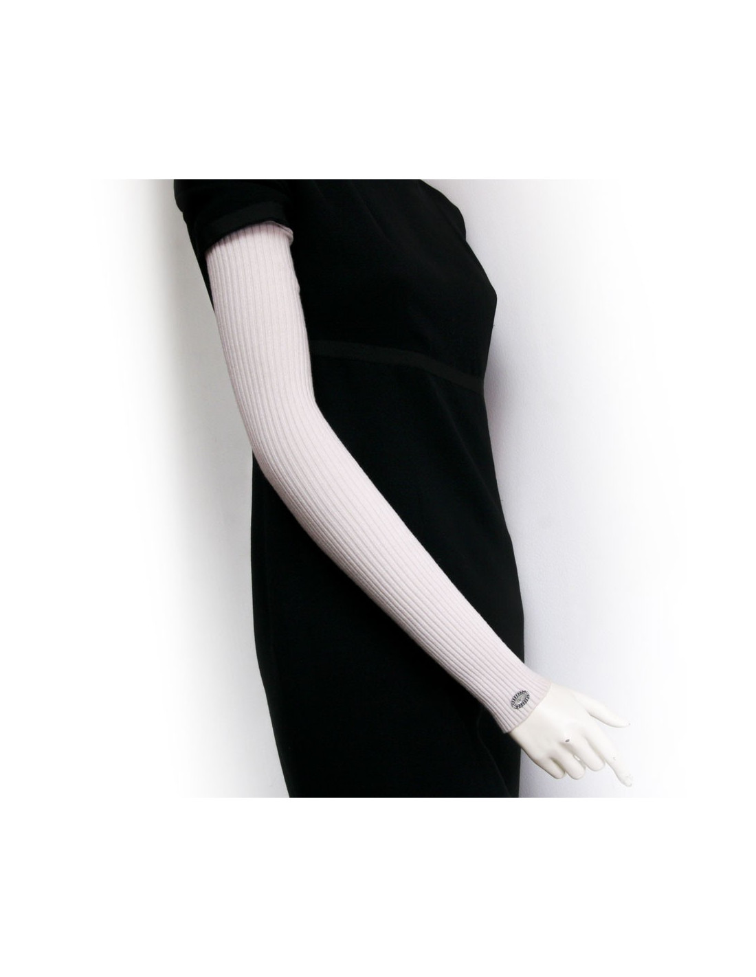 Manchons Chanel, taille 1 en laine et viscose beige. Idéal pour garder vos bras bien au chaud, ils pourront vous servir en toutes saisons. Petit sigle en métal argent signée Chanel à l'extrémité des 2 manchons. Très bon état