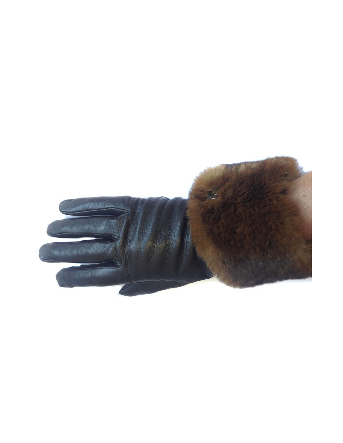 Gants CHANEL cuir d'agneau marron et orylag T6,5
