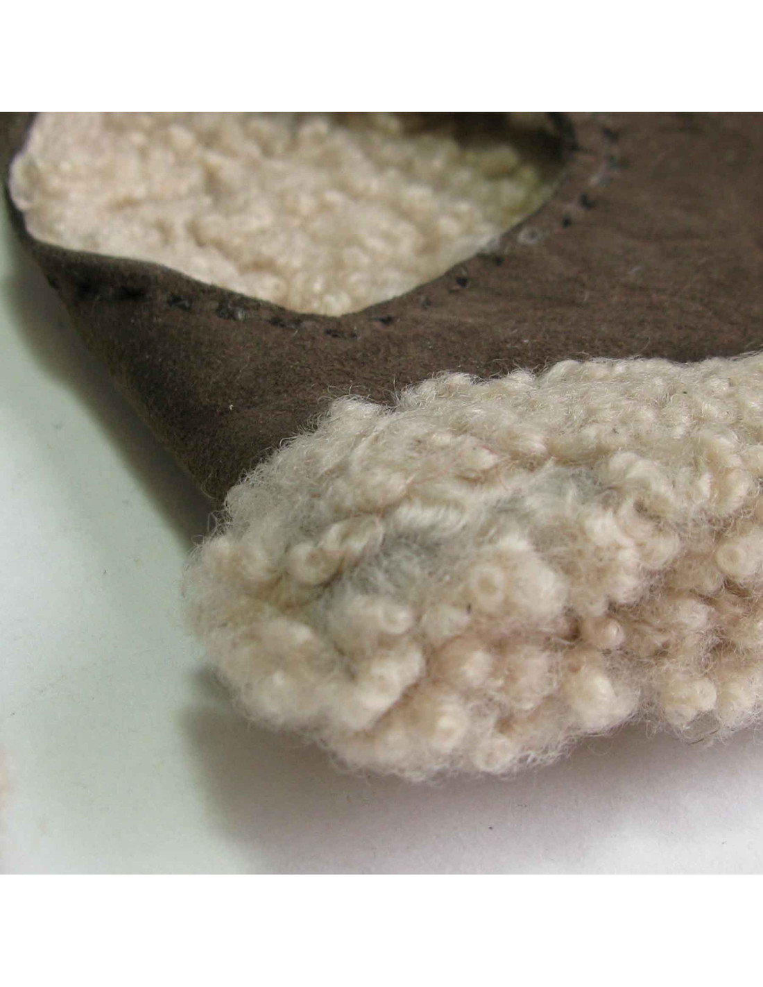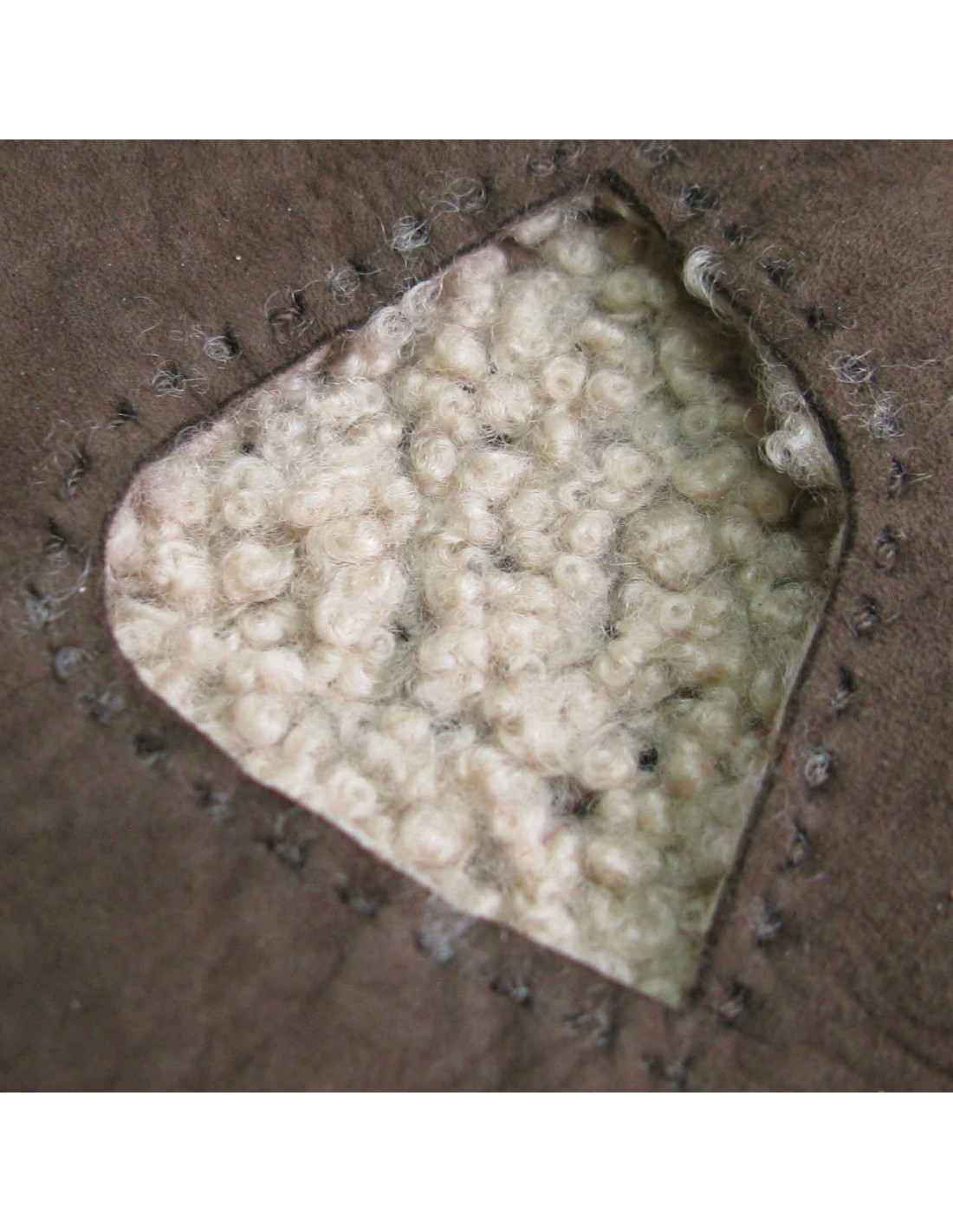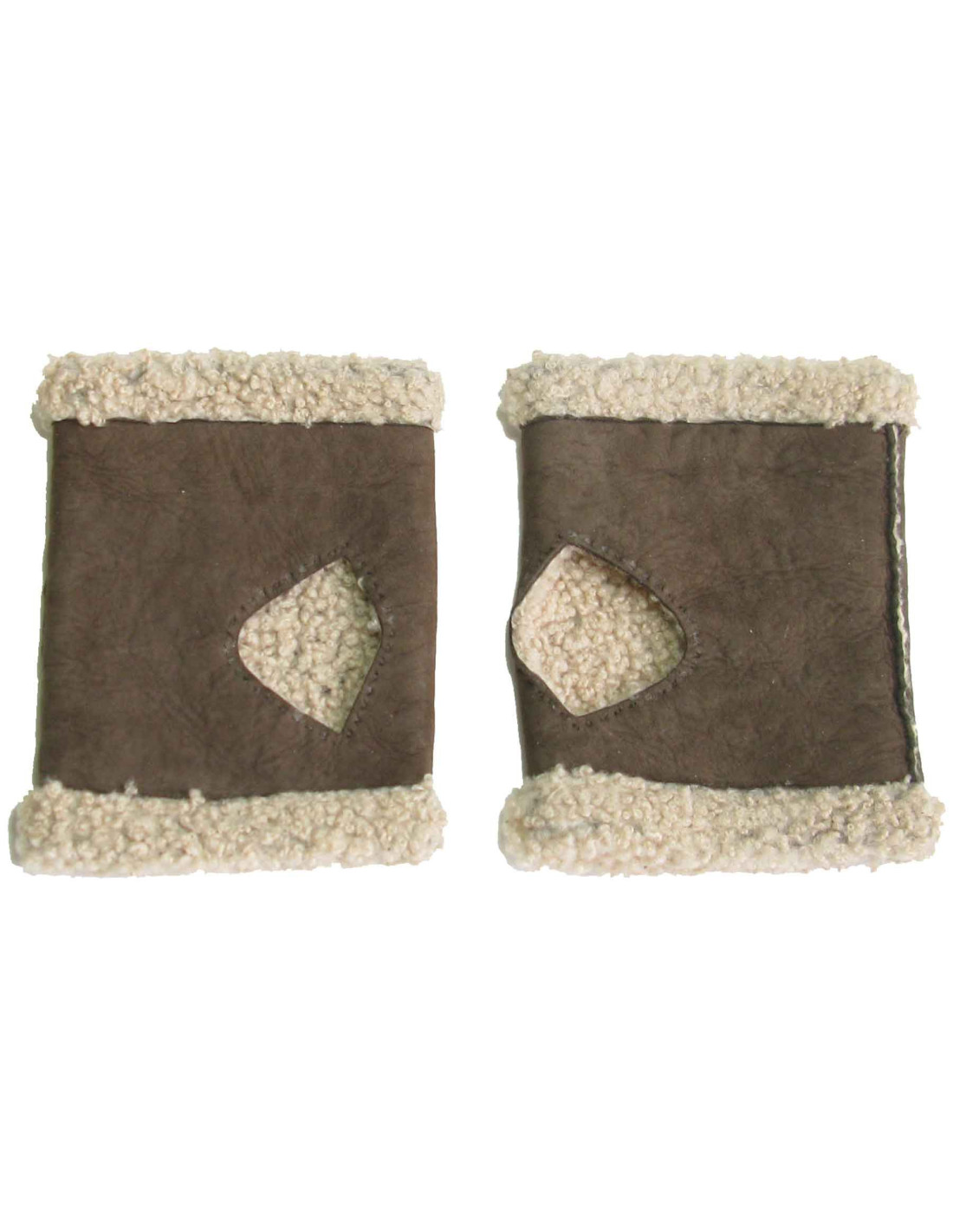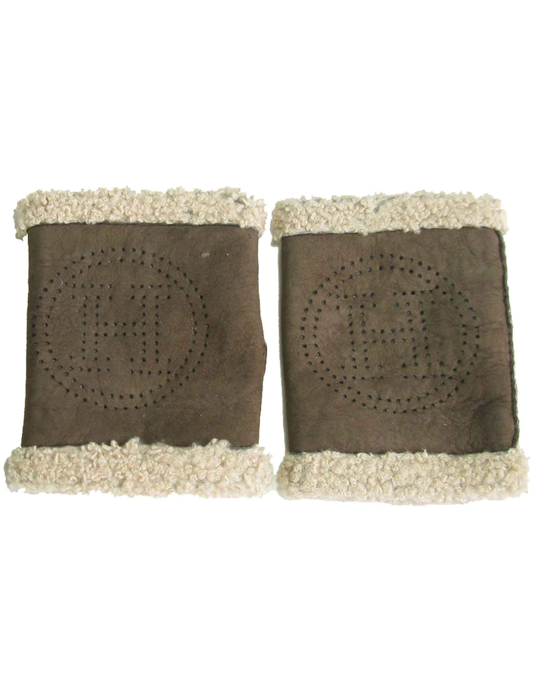 Belle paire de mitaines Hermès en peau retournée marron foncé et marron clair. Taille 7,5. Un H est perforé sur le dos de chaque mitaine. En très bon état.