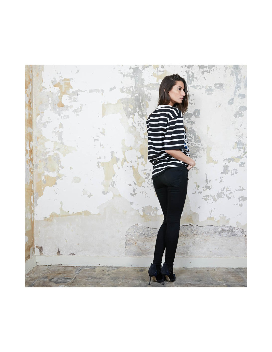 Dimensions à plat : Largeur des épaules 47 cm, largeur sous les aisselles 59 cm et hauteur totale 69 cm.