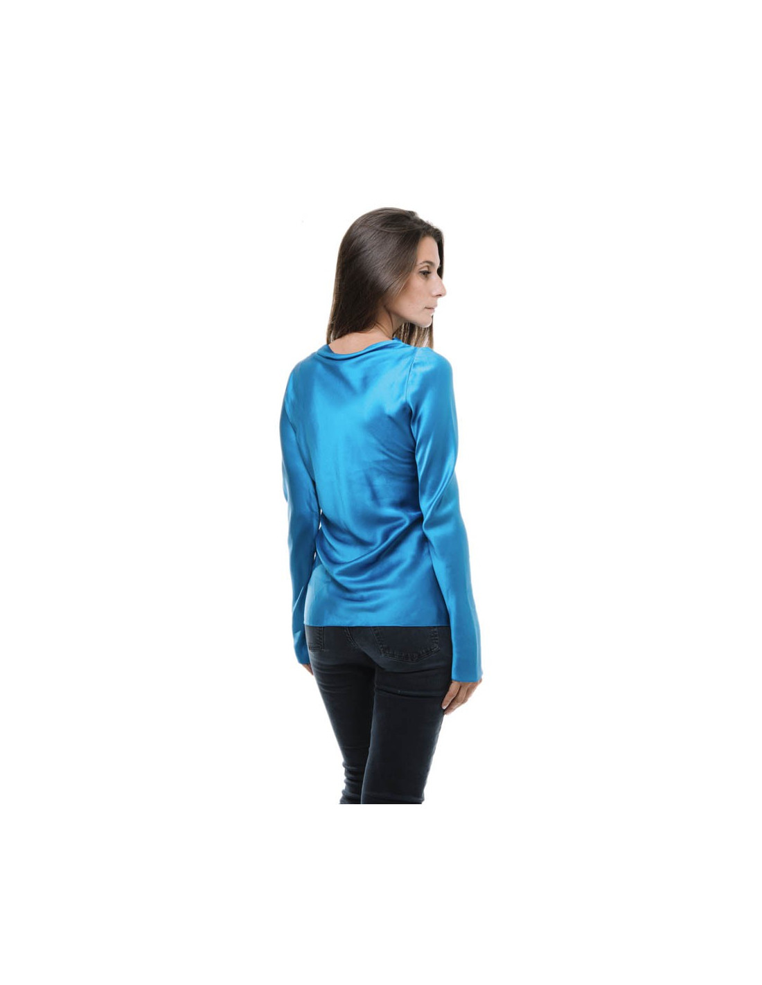 Blouse de la maison Yves Saint Laurent en soie bleu roi coupé en biais.