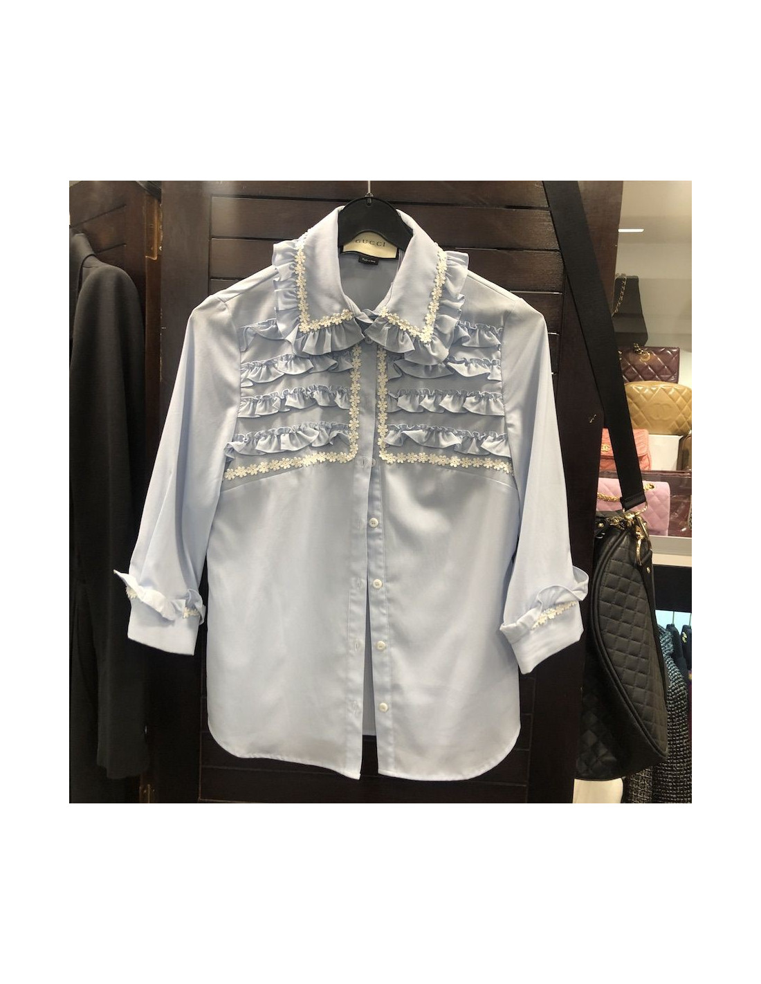 Derniers articles en stock HAUTS/CHEMISIERS Crop Top CHANEL fleuri Croisière 1996 CHANEL 31292 2 600,00 € Crop Top CHANEL fleuri Taille 38 Condition : très bon étatPays de fabrication : France Modèle : crop topCouleur : multicolore Collection Croisière 1996Dimensions à plat : épaules échancrées : 36 cm, sous les aisselles 40 cm, longueur totale 31 cm. Ajouter au panier